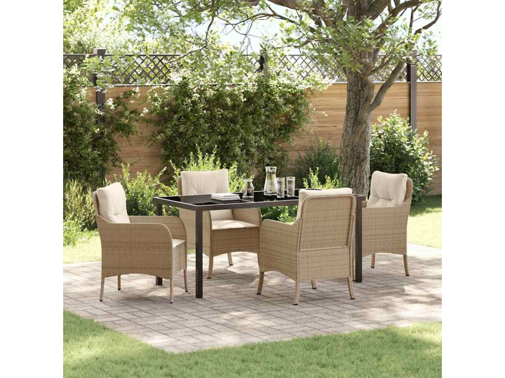 Zahradní jídelní souprava s polštářem 5 pcs Béžová Poly ratan 3380172