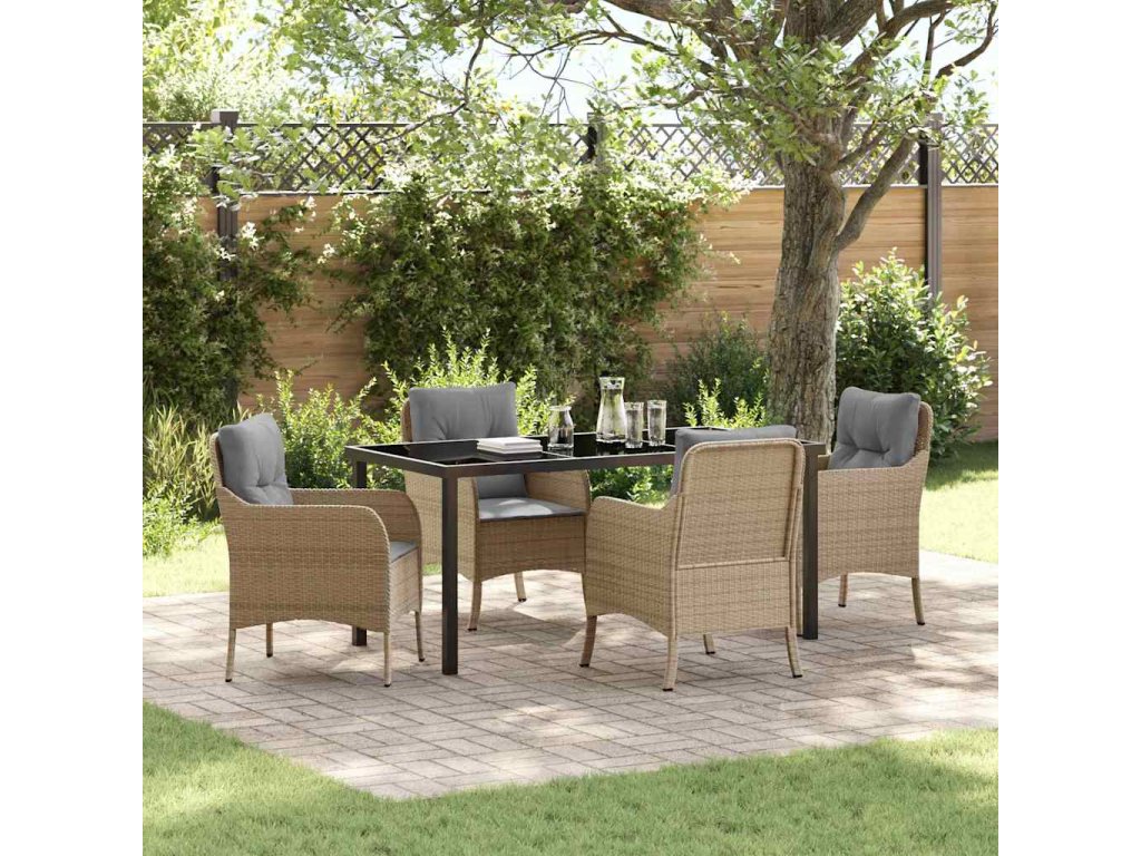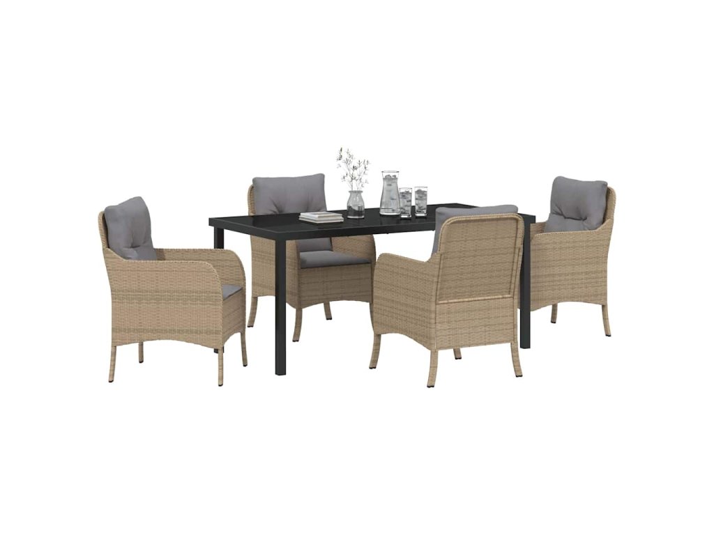 Zahradní jídelní souprava s polštářem 5 pcs Béžová Poly ratan 3380179