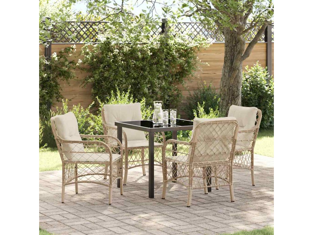 Zahradní jídelní souprava s polštářem 5 pcs Béžová Poly ratan 3380226