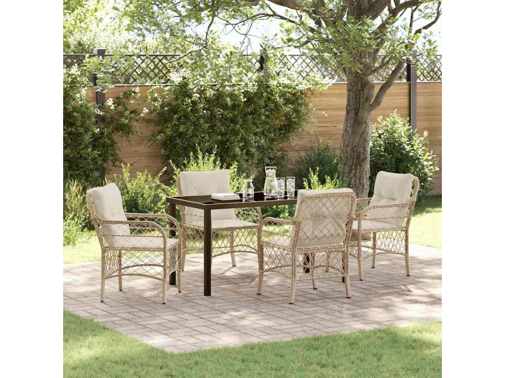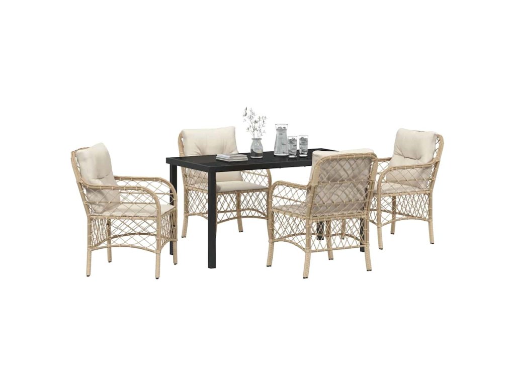 Zahradní jídelní souprava s polštářem 5 pcs Béžová Poly ratan 3380227