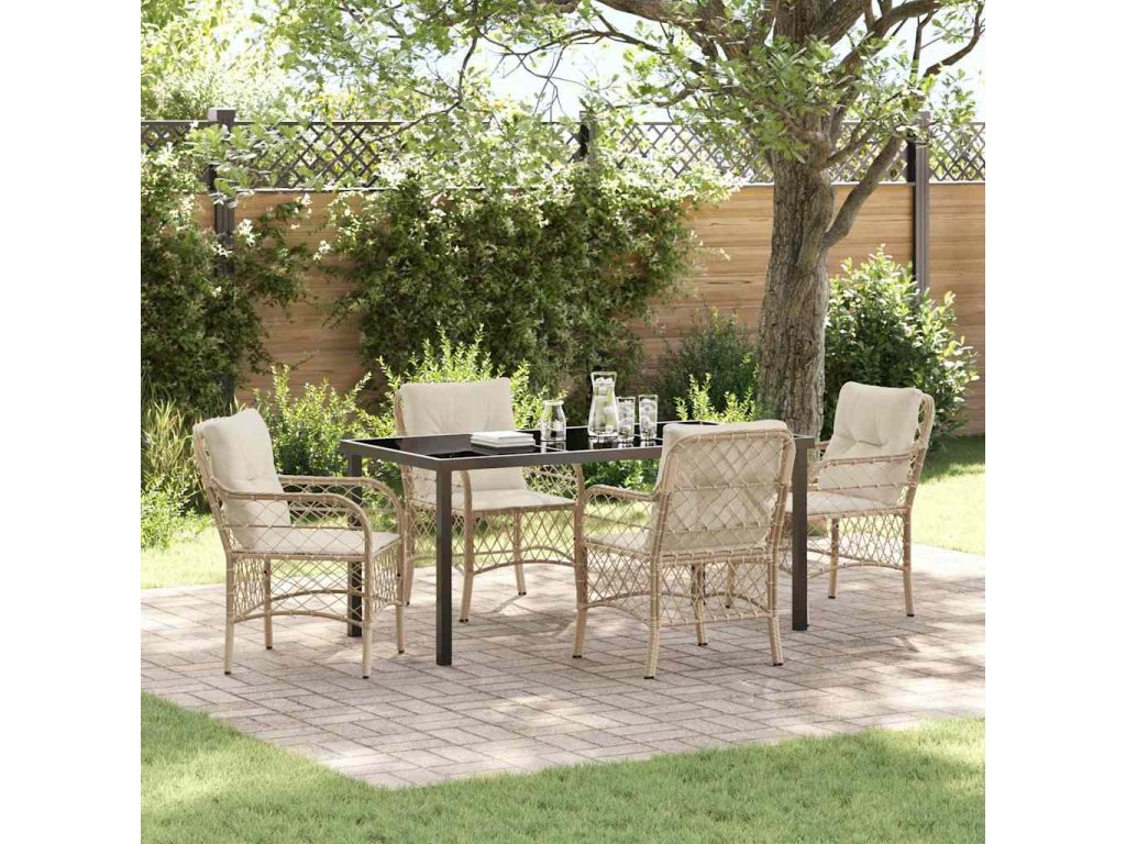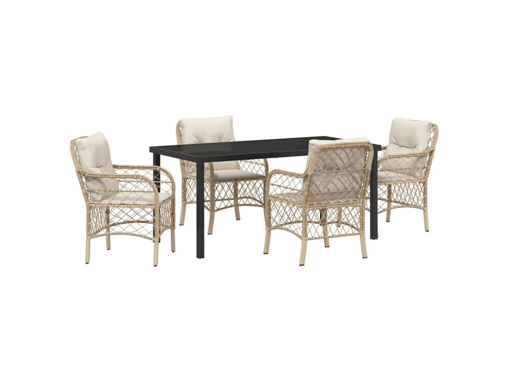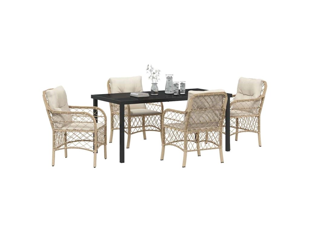 Zahradní jídelní souprava s polštářem 5 pcs Béžová Poly ratan 3380228