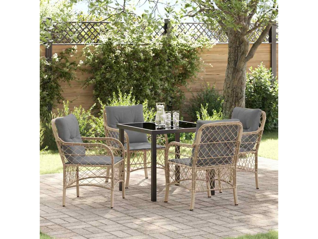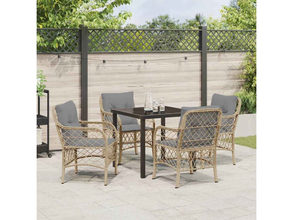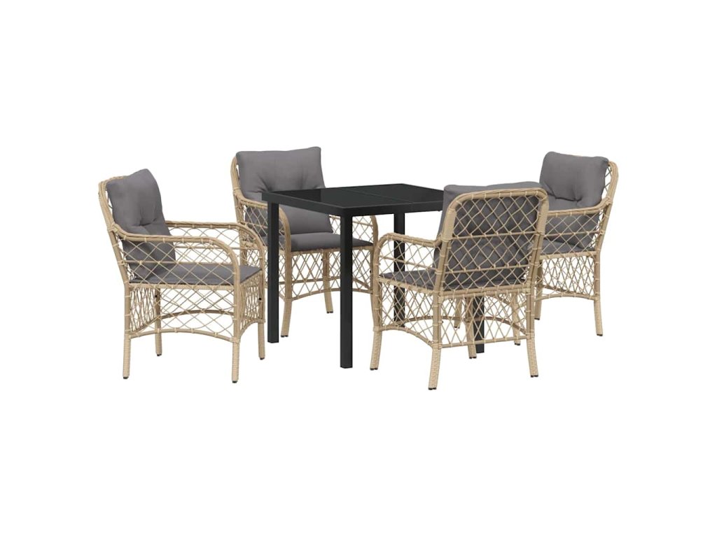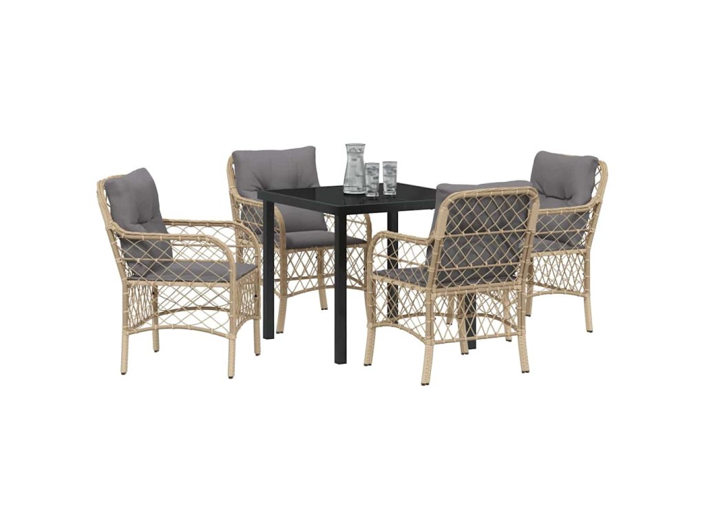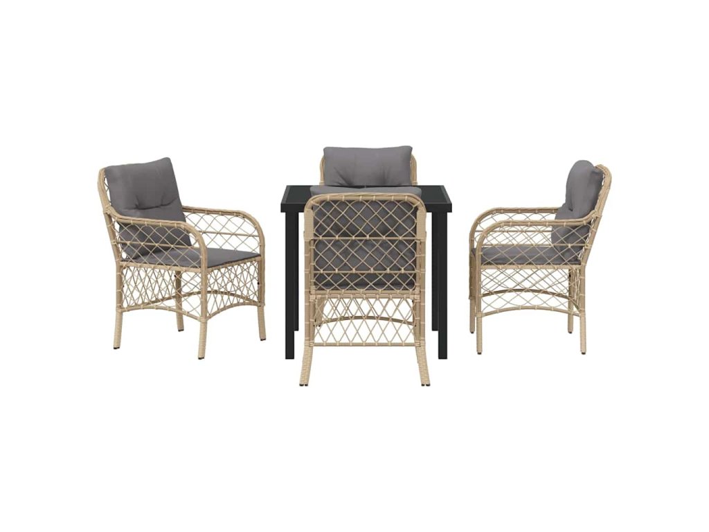 Zahradní jídelní souprava s polštářem 5 pcs Béžová Poly ratan 3380233