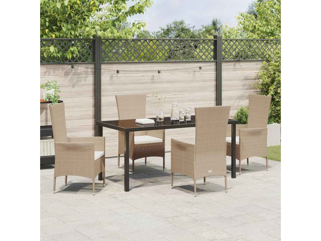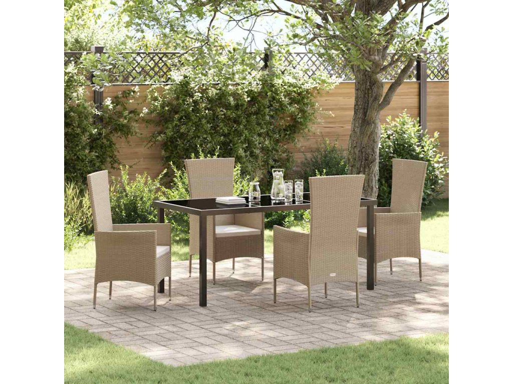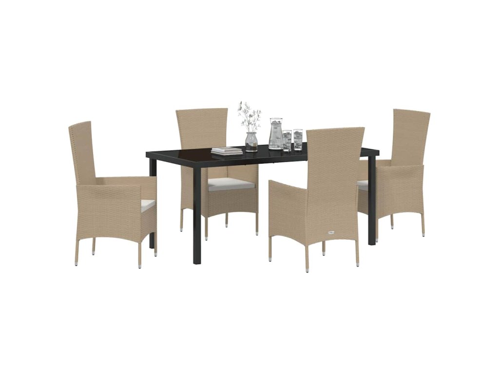 Zahradní jídelní souprava s polštářem 5 pcs Béžová polyratan 3379460