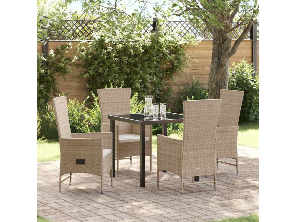 Zahradní jídelní souprava s polštářem 5 pcs Béžová polyratan 3379465