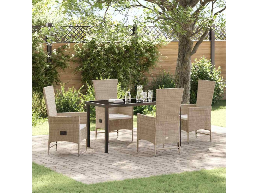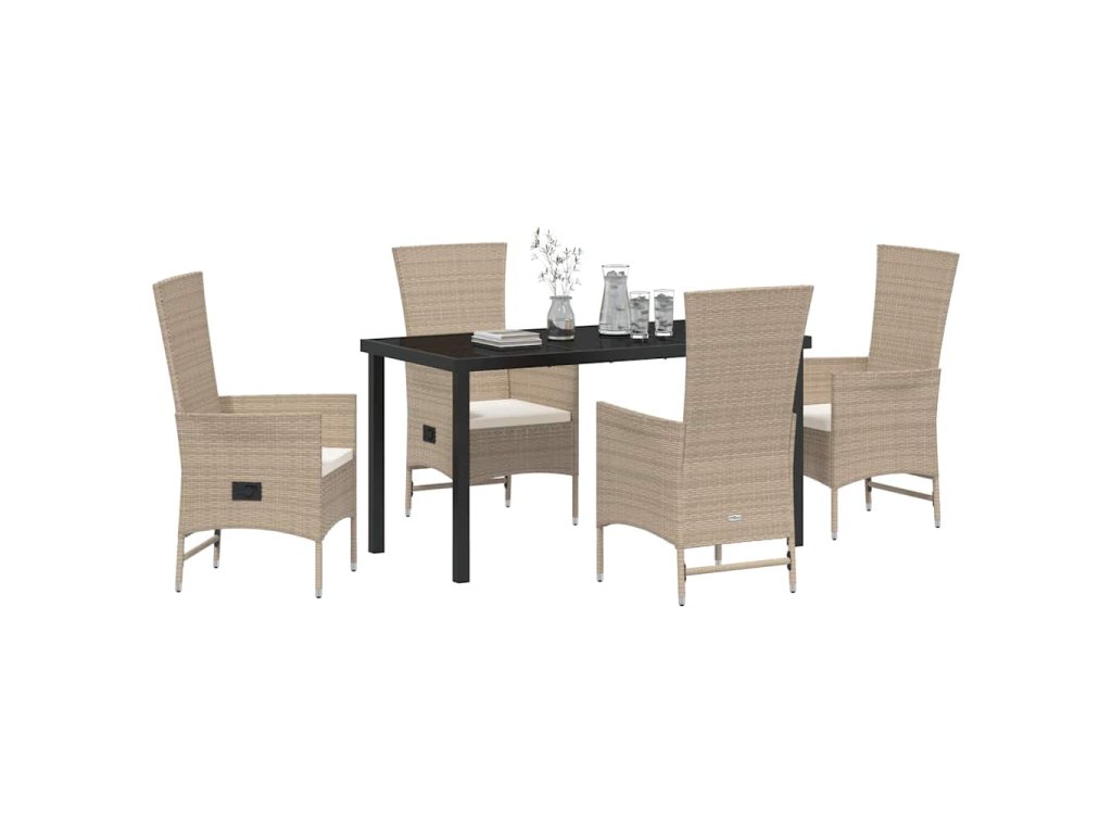 Zahradní jídelní souprava s polštářem 5 pcs Béžová polyratan 3379466