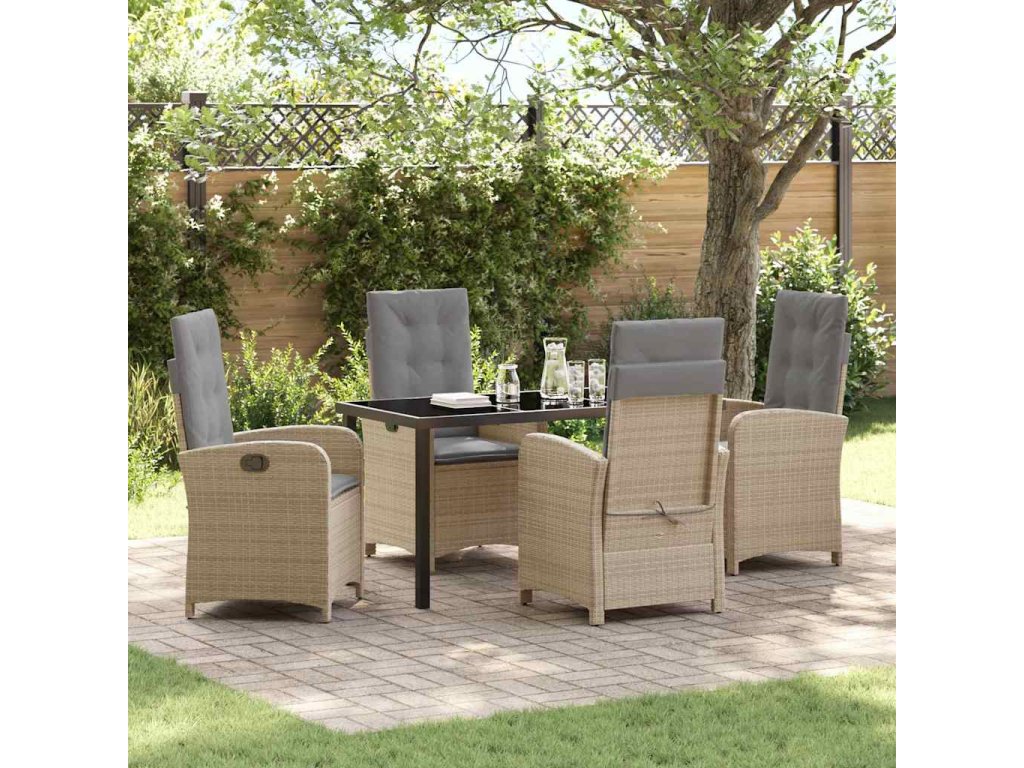 Zahradní jídelní souprava s polštářem 5 pcs Béžová polyratan 3380290