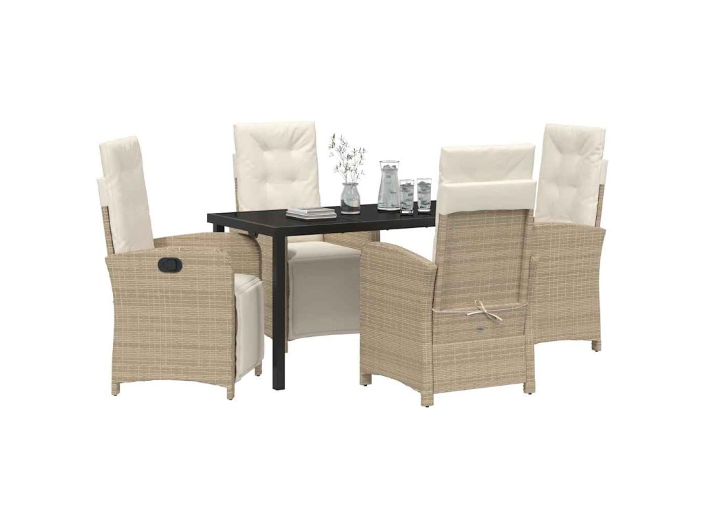 Zahradní jídelní souprava s polštářem 5 pcs Béžová polyratan 3380332