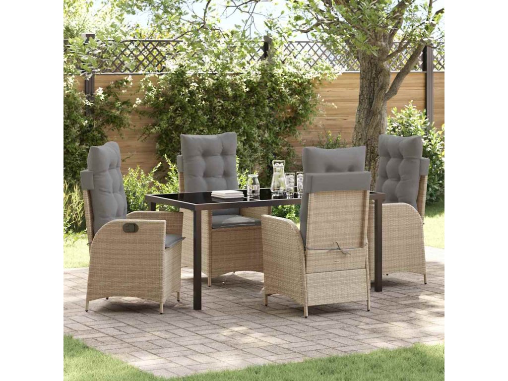 Zahradní jídelní souprava s polštářem 5 pcs Béžová polyratan 3380515