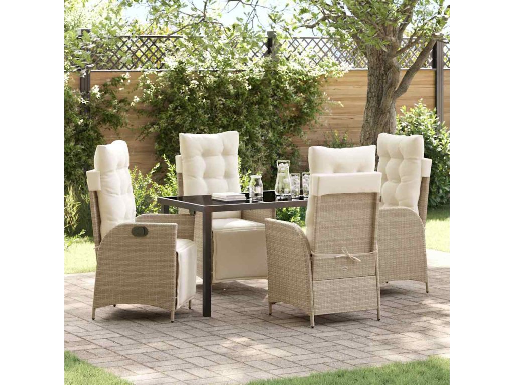 Zahradní jídelní souprava s polštářem 5 pcs Béžová polyratan 3380556