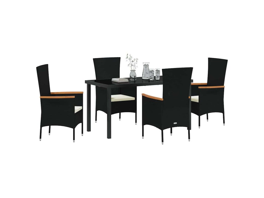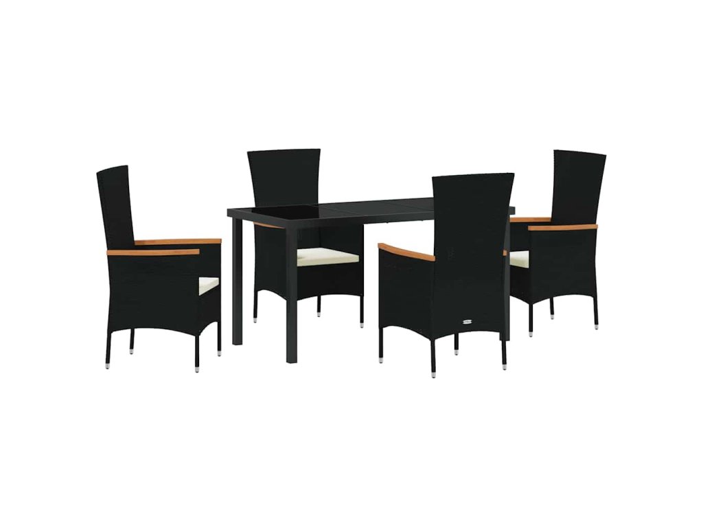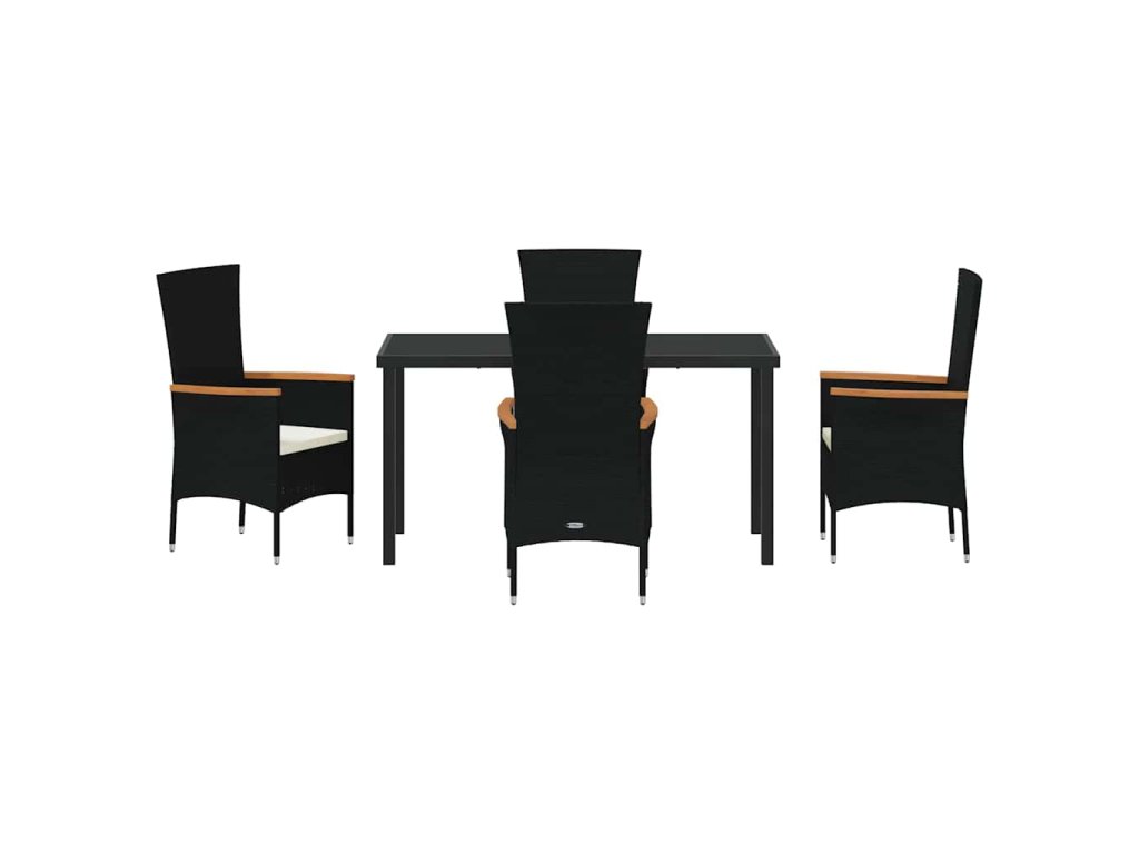 Zahradní jídelní souprava s polštářem 5 pcs Černá Poly ratan 3379424