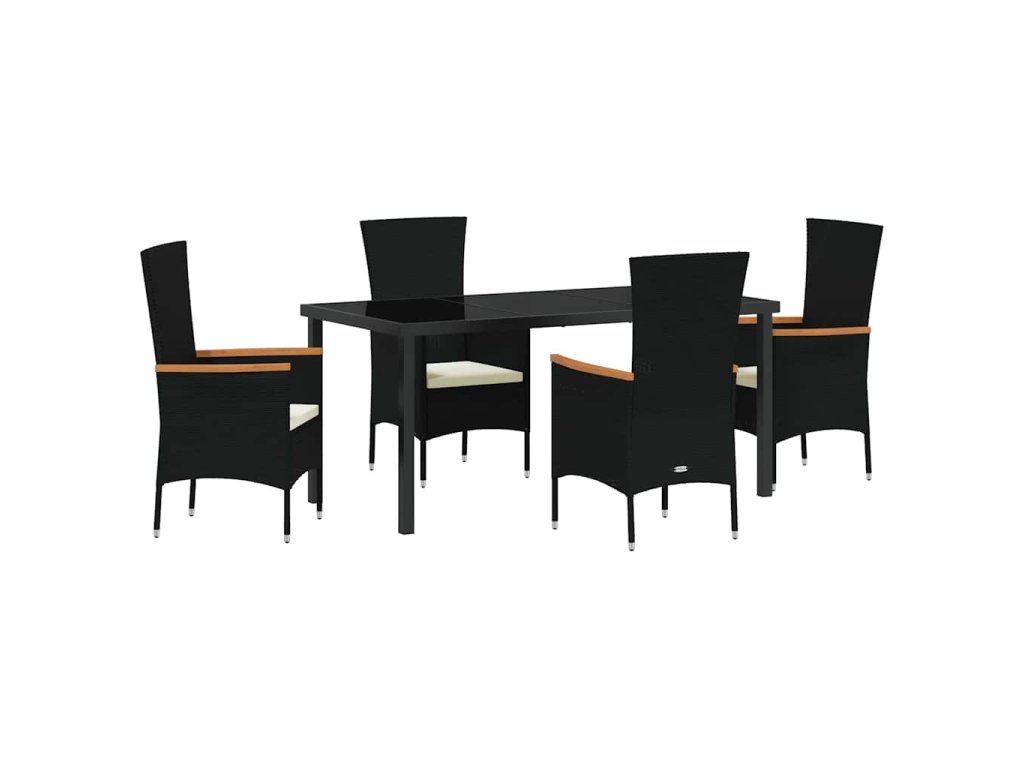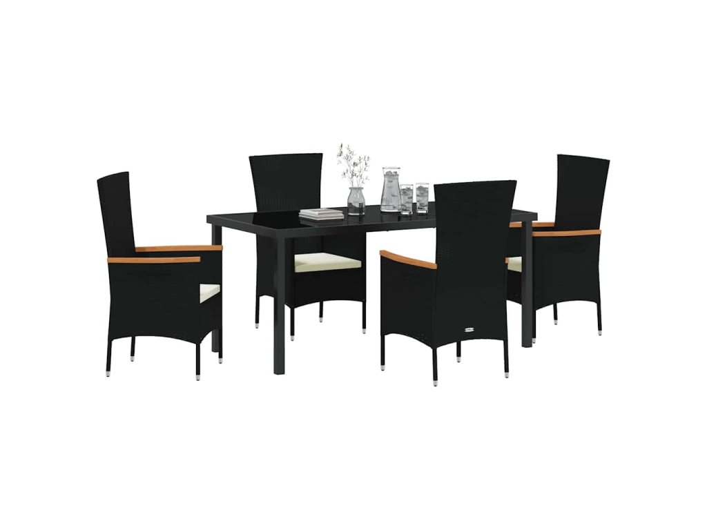 Zahradní jídelní souprava s polštářem 5 pcs Černá Poly ratan 3379425