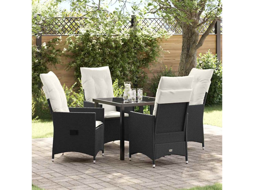 Zahradní jídelní souprava s polštářem 5 pcs Černá Poly ratan 3379535