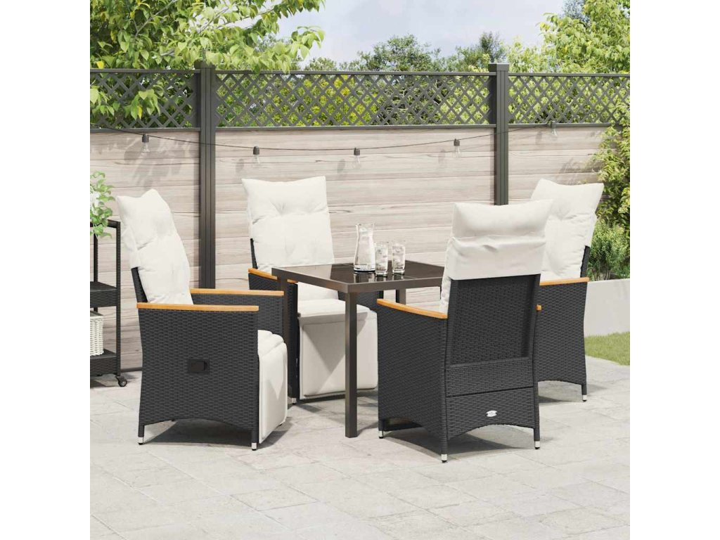 Zahradní jídelní souprava s polštářem 5 pcs Černá Poly ratan 3379612