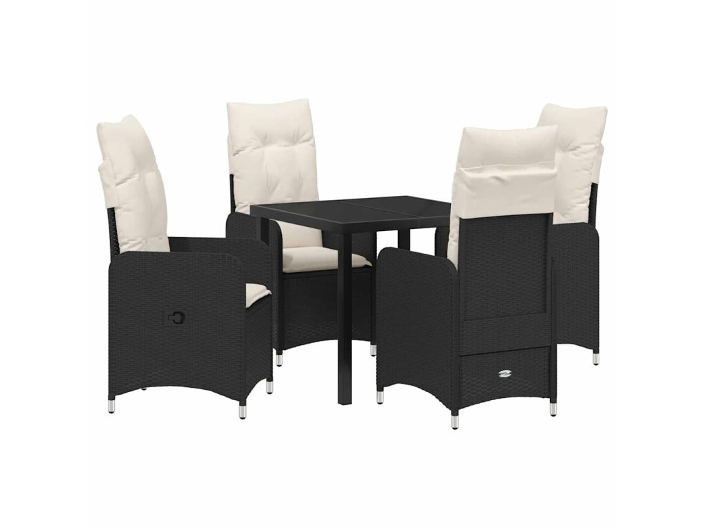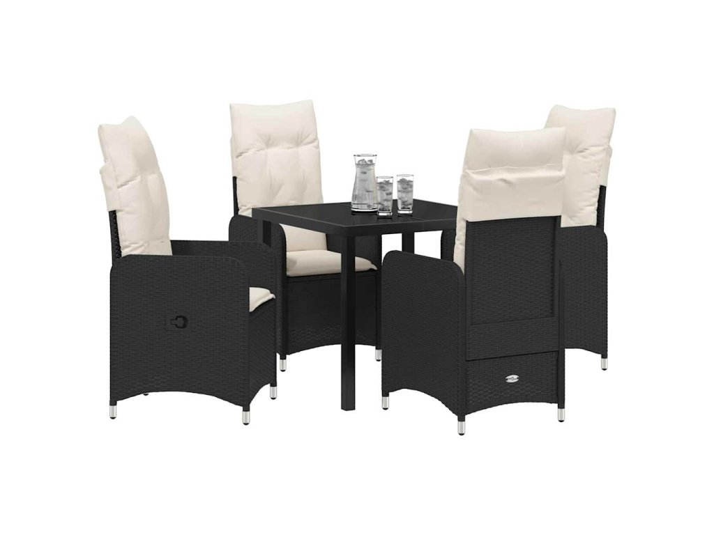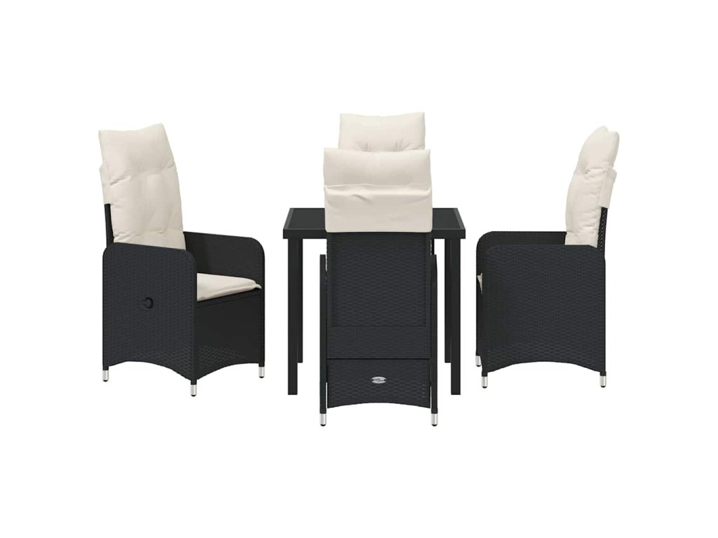 Zahradní jídelní souprava s polštářem 5 pcs Černá Poly ratan 3379633