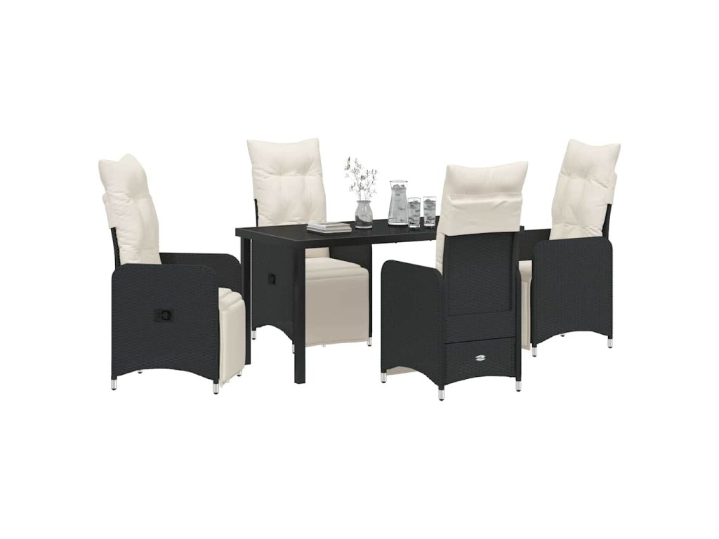 Zahradní jídelní souprava s polštářem 5 pcs Černá Poly ratan 3379662
