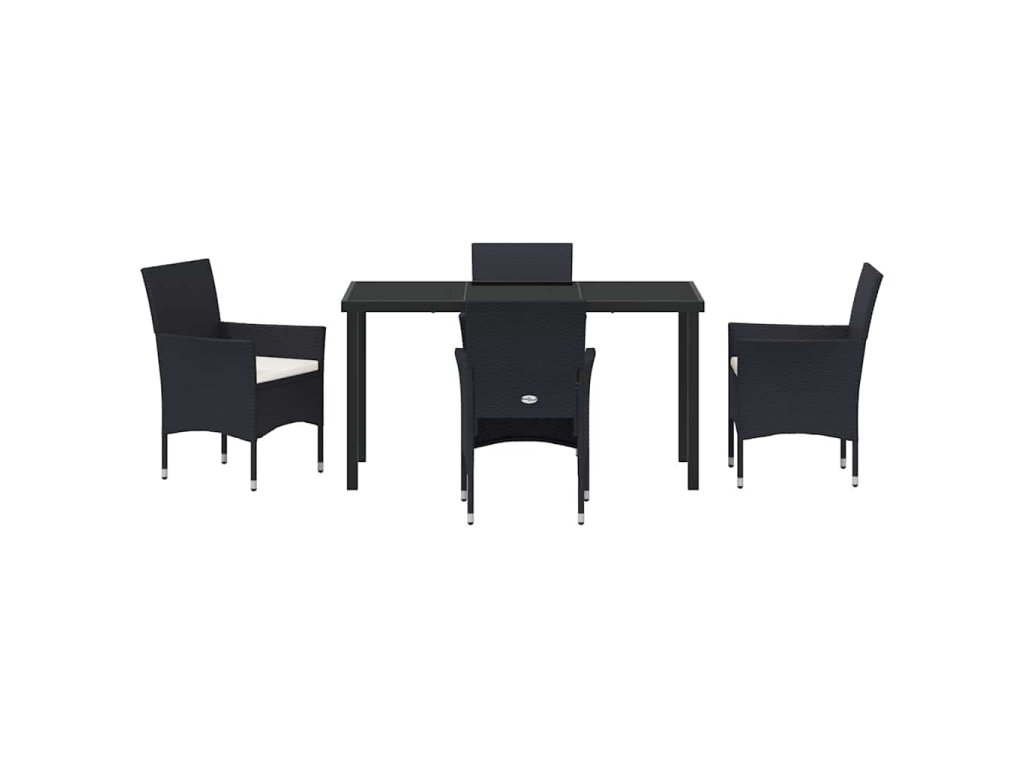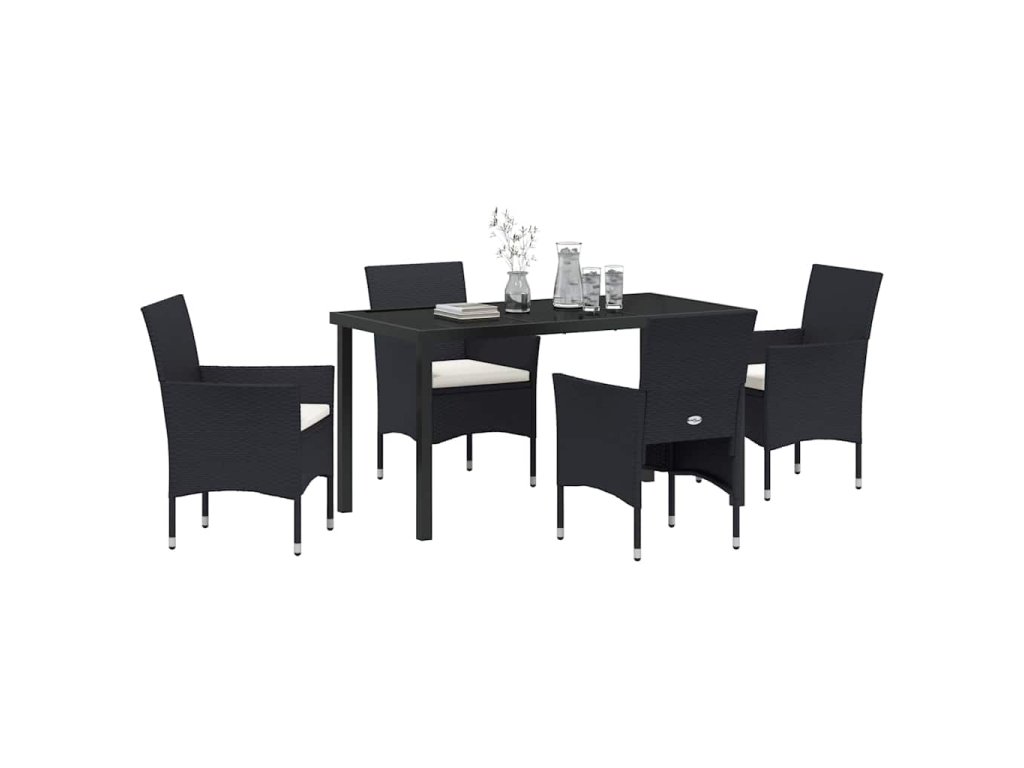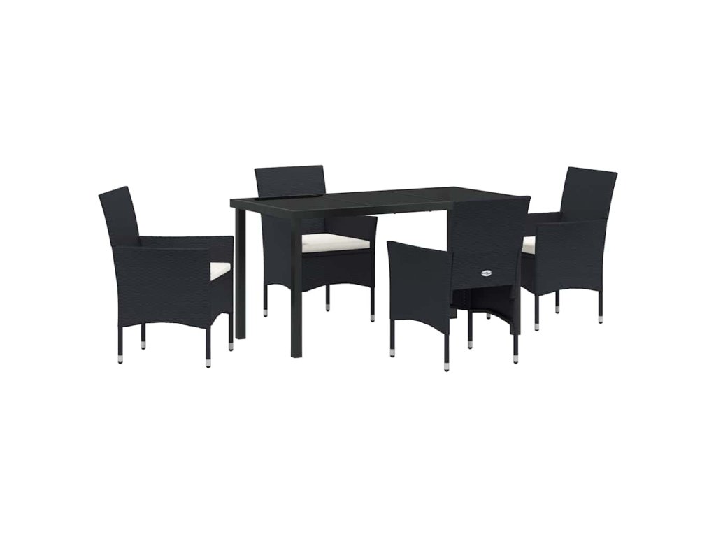 Zahradní jídelní souprava s polštářem 5 pcs Černá Poly ratan 3379725