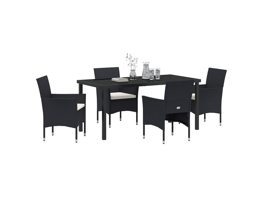 Zahradní jídelní souprava s polštářem 5 pcs Černá Poly ratan 3379726
