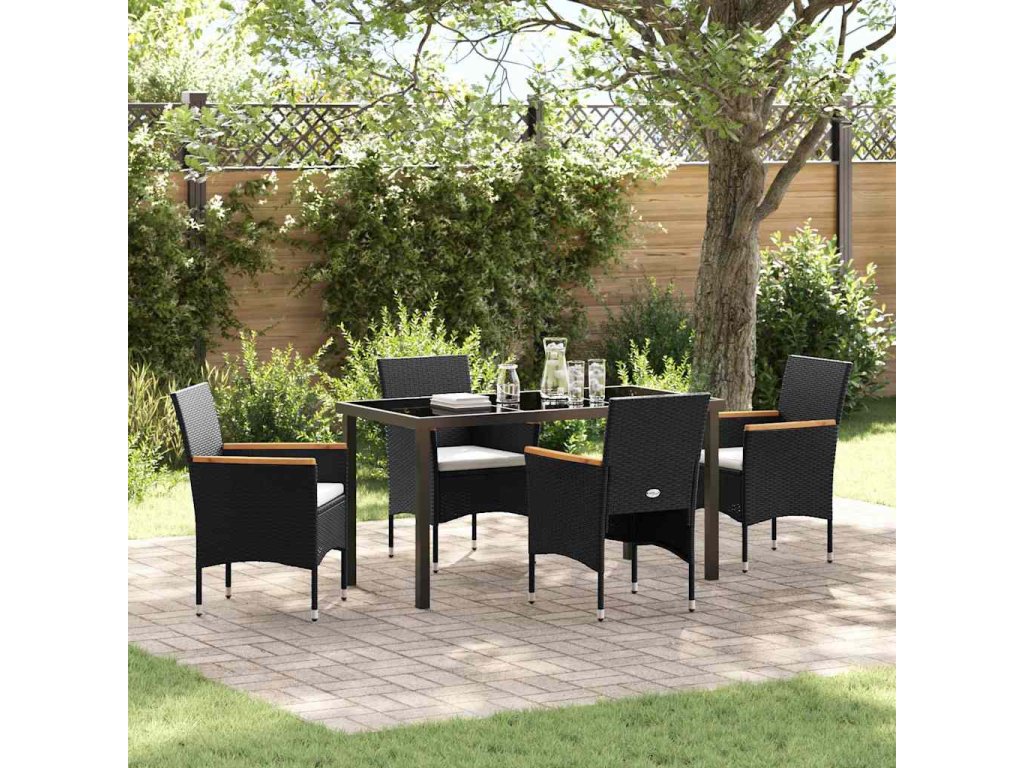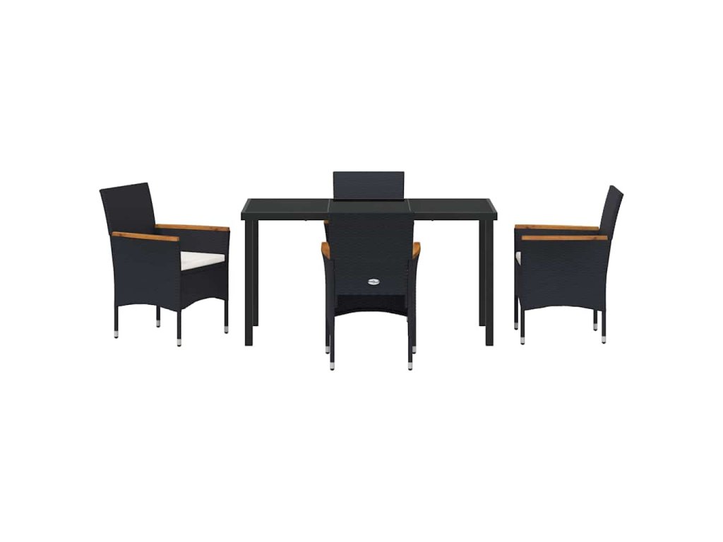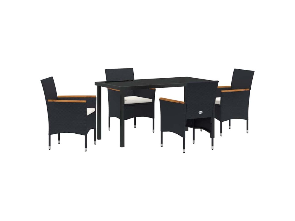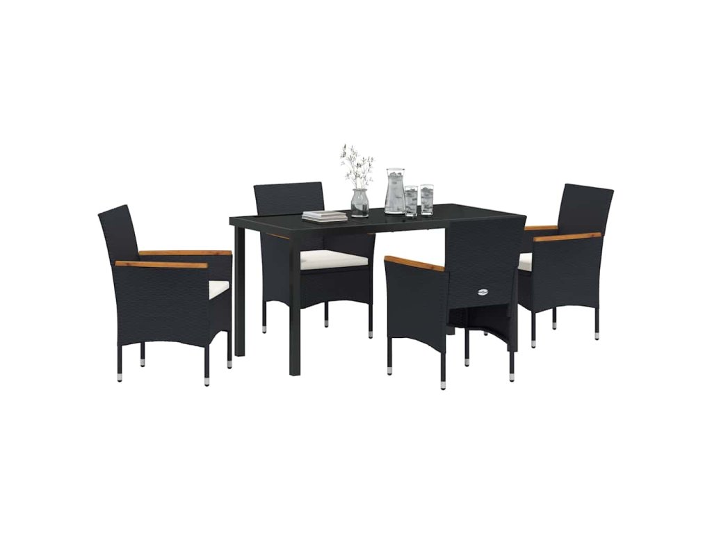 Zahradní jídelní souprava s polštářem 5 pcs Černá Poly ratan 3379753