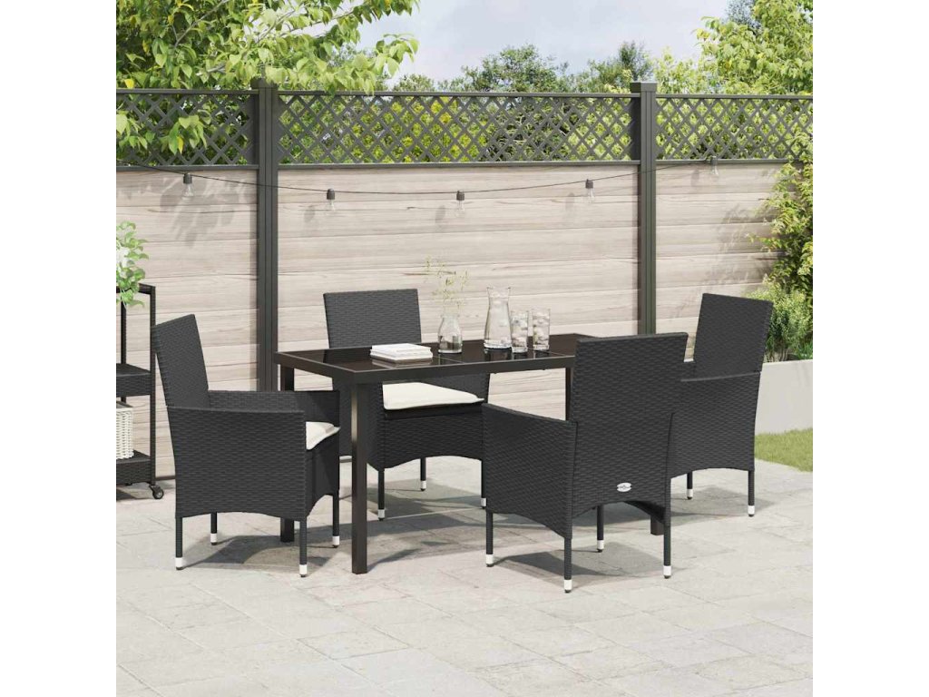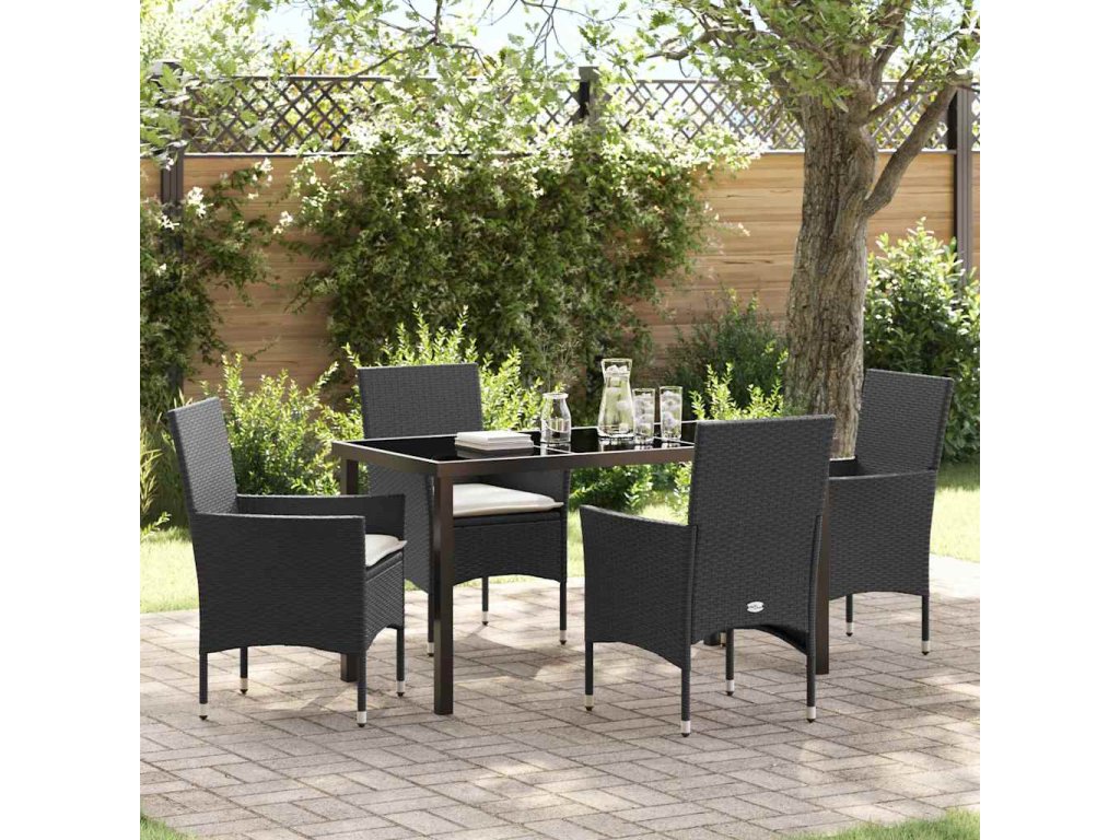 Zahradní jídelní souprava s polštářem 5 pcs Černá Poly ratan 3379767