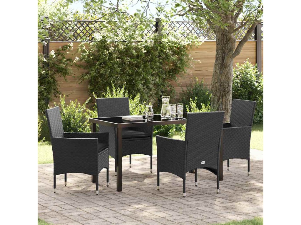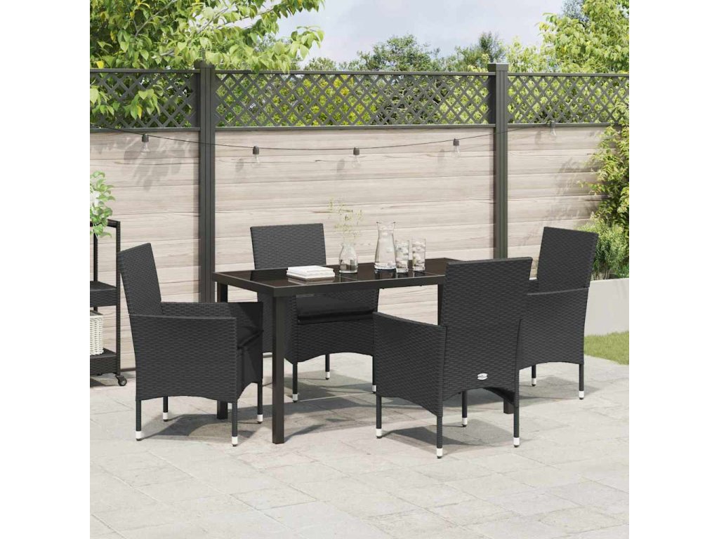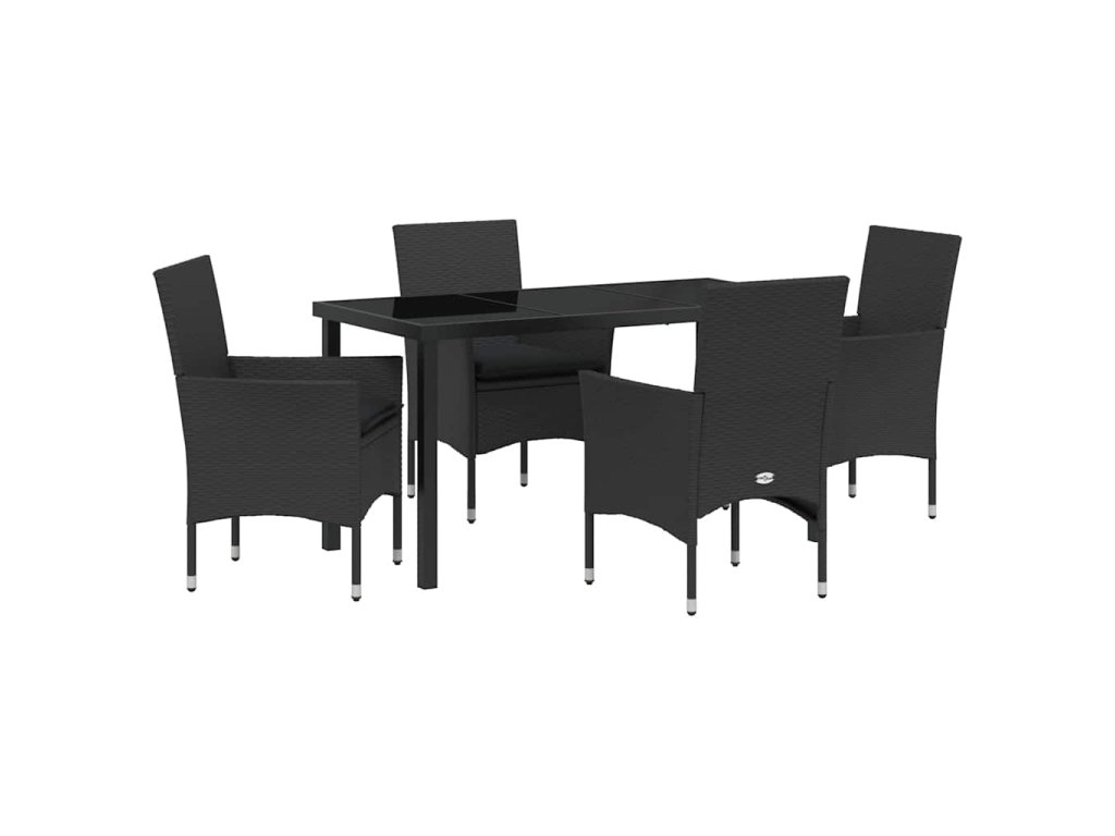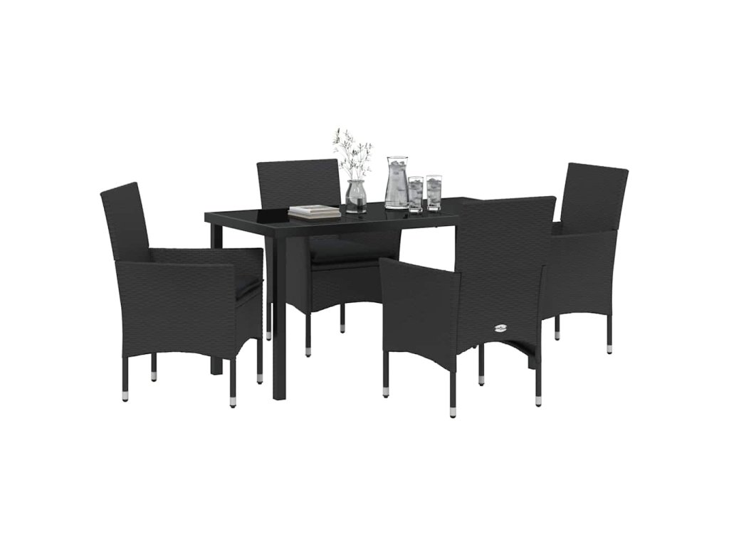 Zahradní jídelní souprava s polštářem 5 pcs Černá Poly ratan 3379774