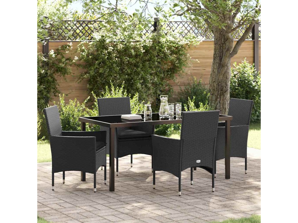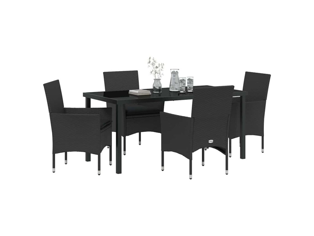 Zahradní jídelní souprava s polštářem 5 pcs Černá Poly ratan 3379775