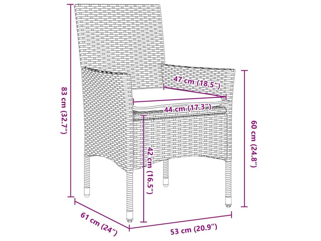 Tahle krásná zahradní jídelní souprava je super pro každého, kdo chce svým venkovním prostorům dodat moderní šmrnc. Design je jednoduchý a funkční, ideální pro terasy a zahrady. Souprava vypadá stylově díky své hladké tkané textuře, která skvěle ladí s různými venkovními prostory a vytváří příjemné a lákavé prostředí pro neformální i formální setkání.
