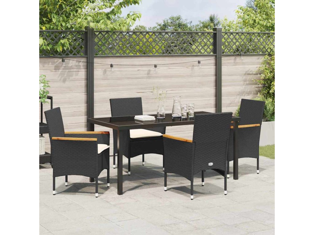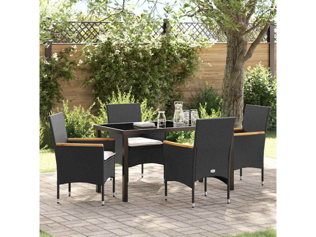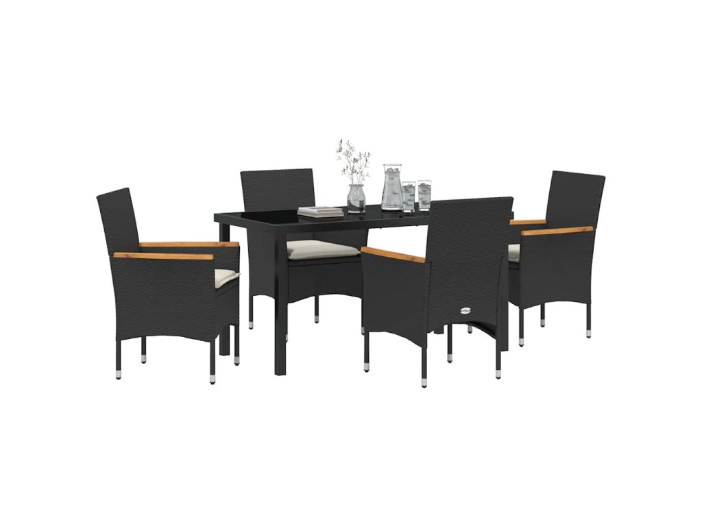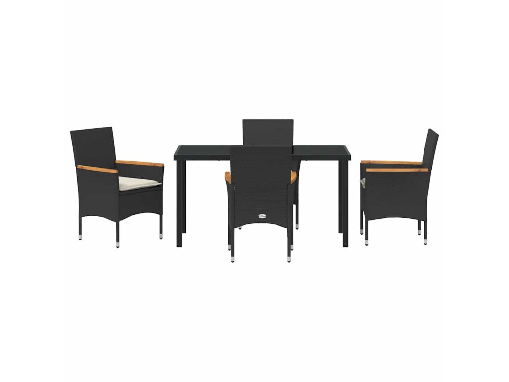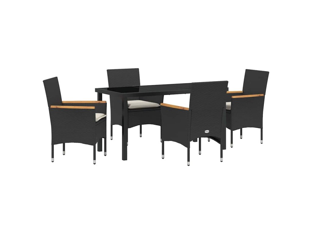 Zahradní jídelní souprava s polštářem 5 pcs Černá Poly ratan 3379844