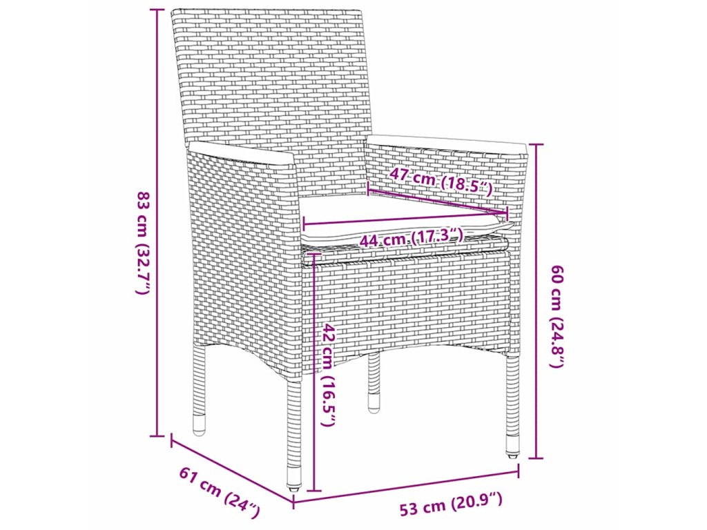- Materiály: Hlavní materiál, polyratan, je odolný a zvládá počasí, ideální na ven. Dává setu stylový tkaný vzhled, což přidává na jeho moderním šarmu. Práškově lakovaná ocel jednoduše udržuje rám silný a stabilní, takže se na něj můžeš spolehnout, že ti dlouho vydrží.