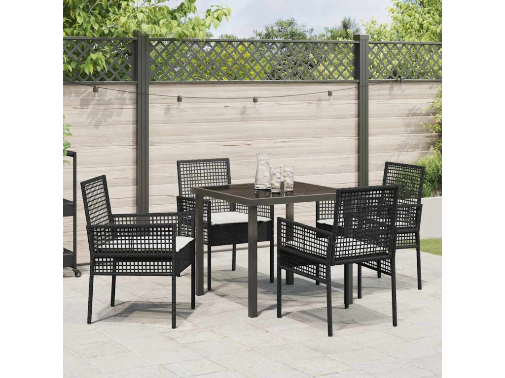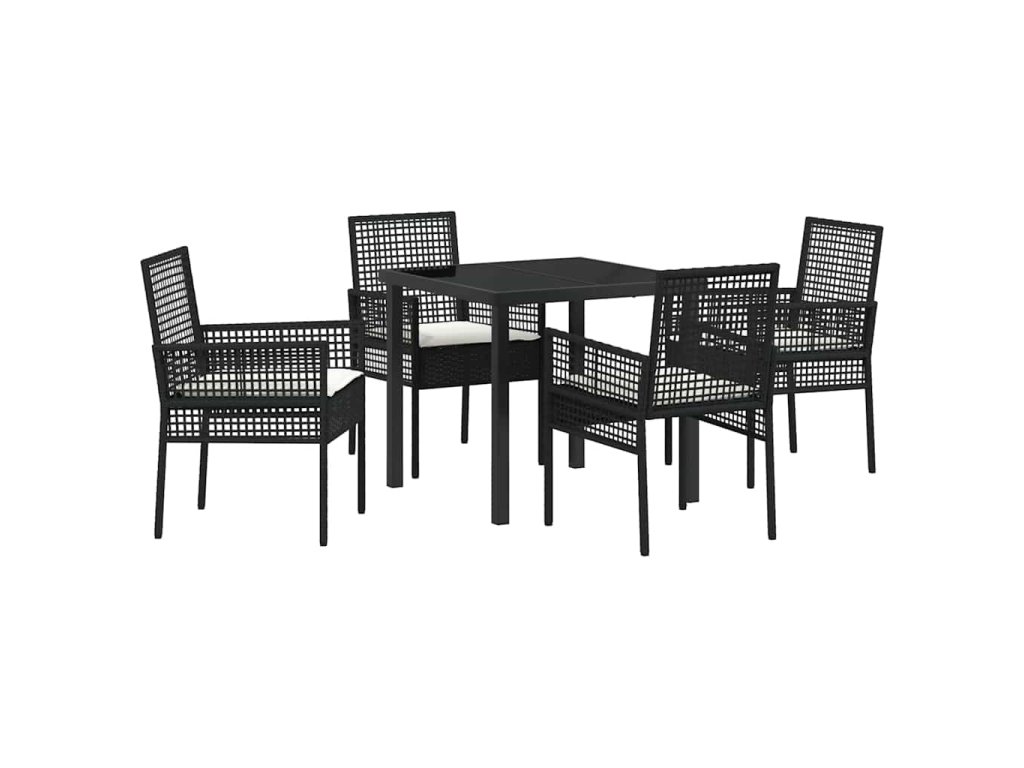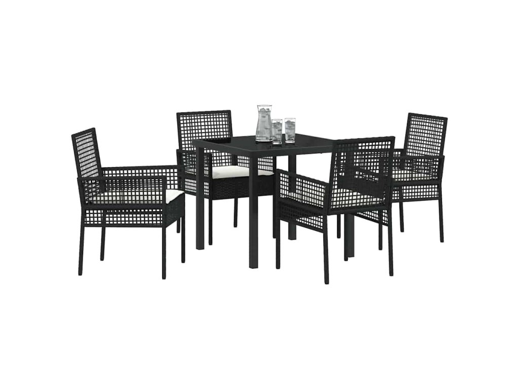 Zahradní jídelní souprava s polštářem 5 pcs Černá Poly ratan 3379864