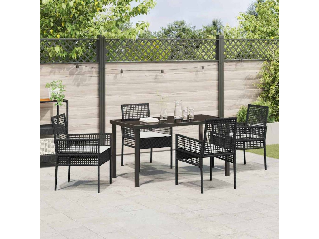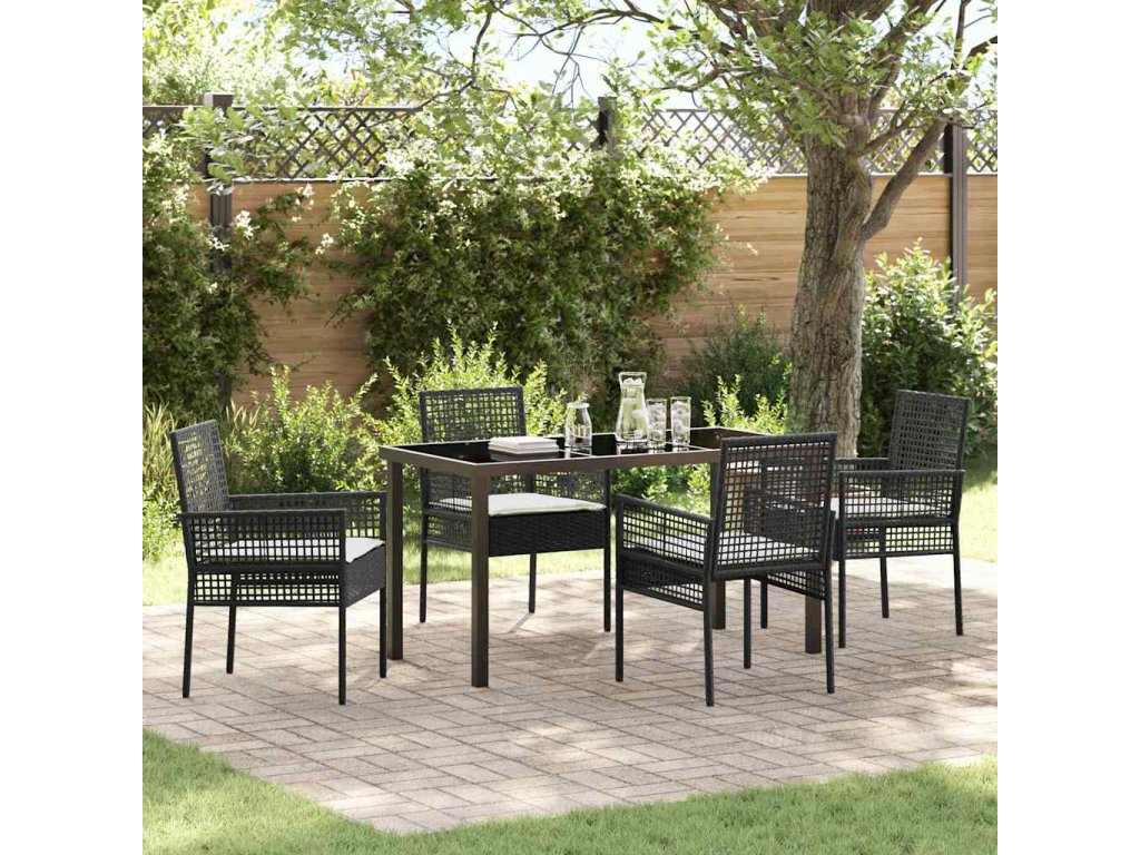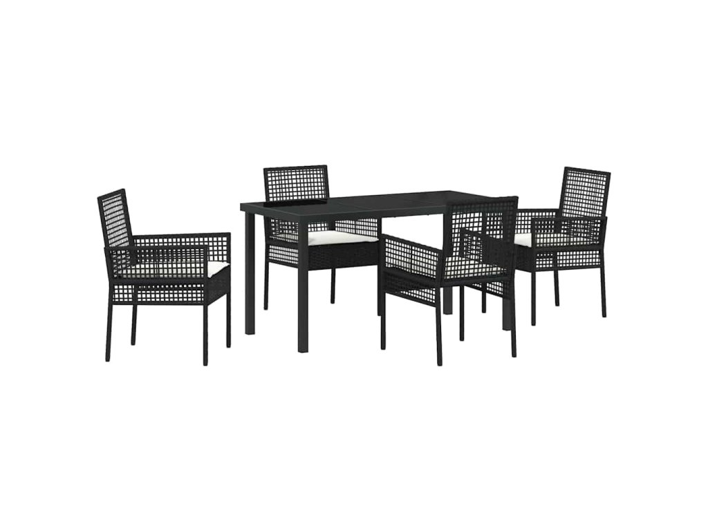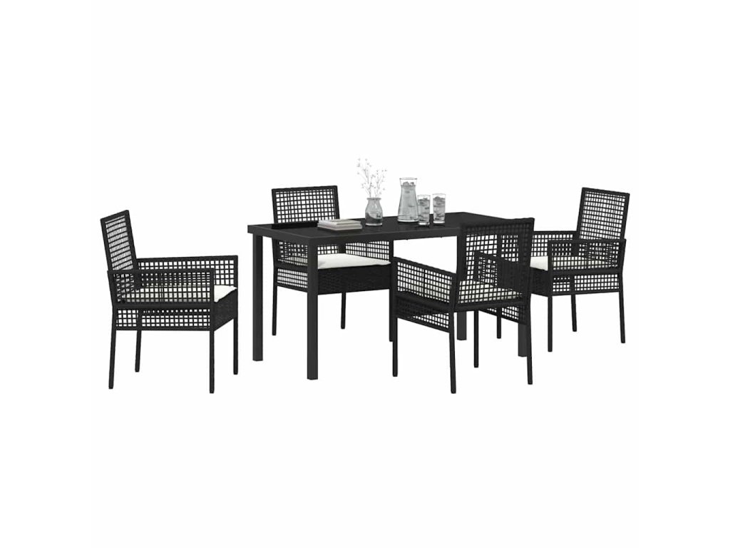 Zahradní jídelní souprava s polštářem 5 pcs Černá Poly ratan 3379865