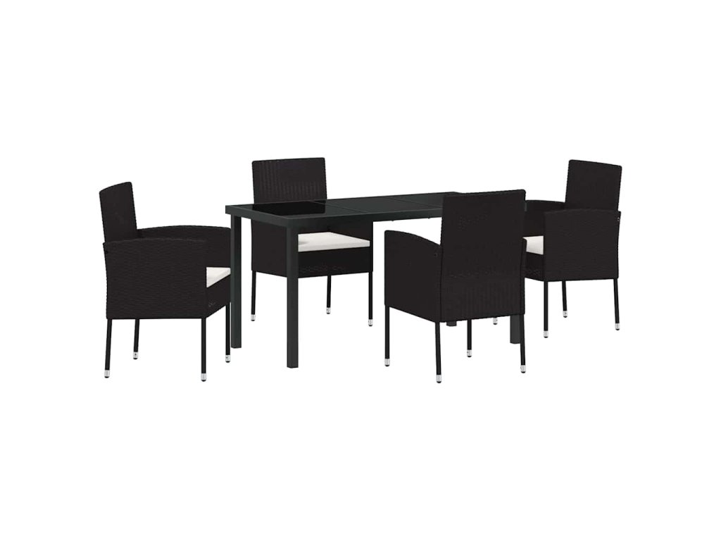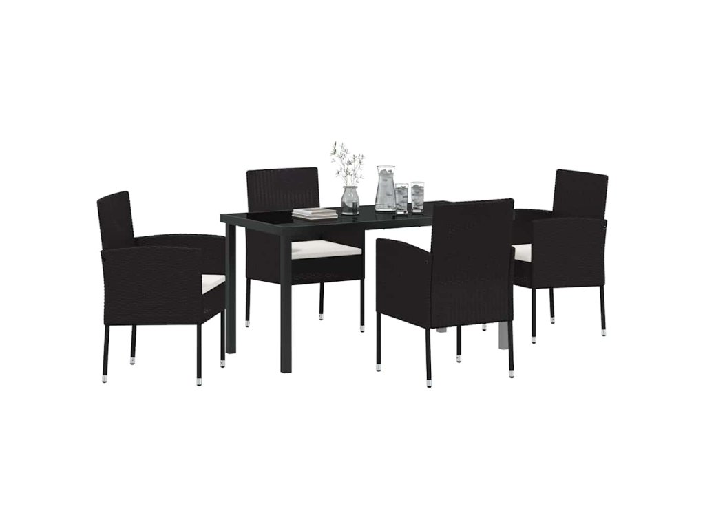 Zahradní jídelní souprava s polštářem 5 pcs Černá Poly ratan 3379921