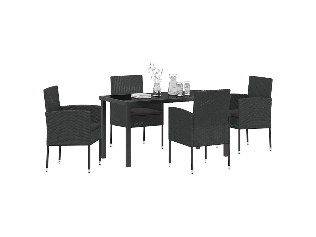 Zahradní jídelní souprava s polštářem 5 pcs Černá Poly ratan 3379935