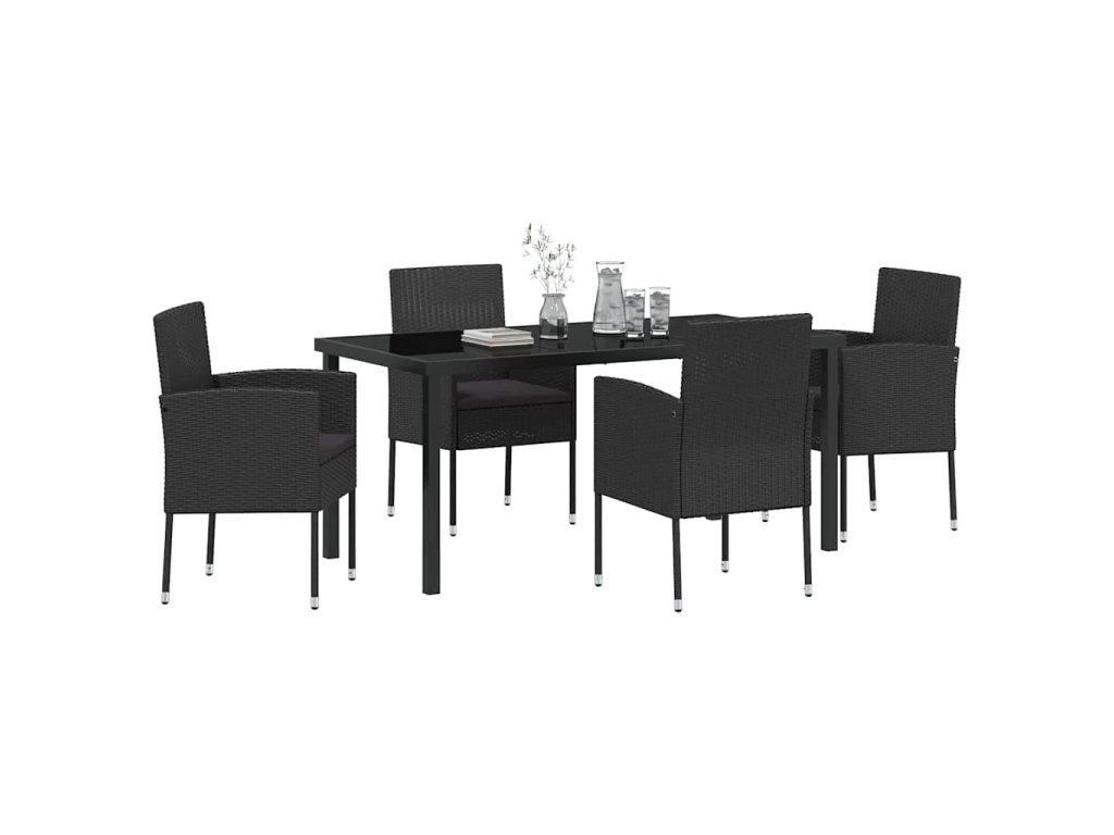 Zahradní jídelní souprava s polštářem 5 pcs Černá Poly ratan 3379936