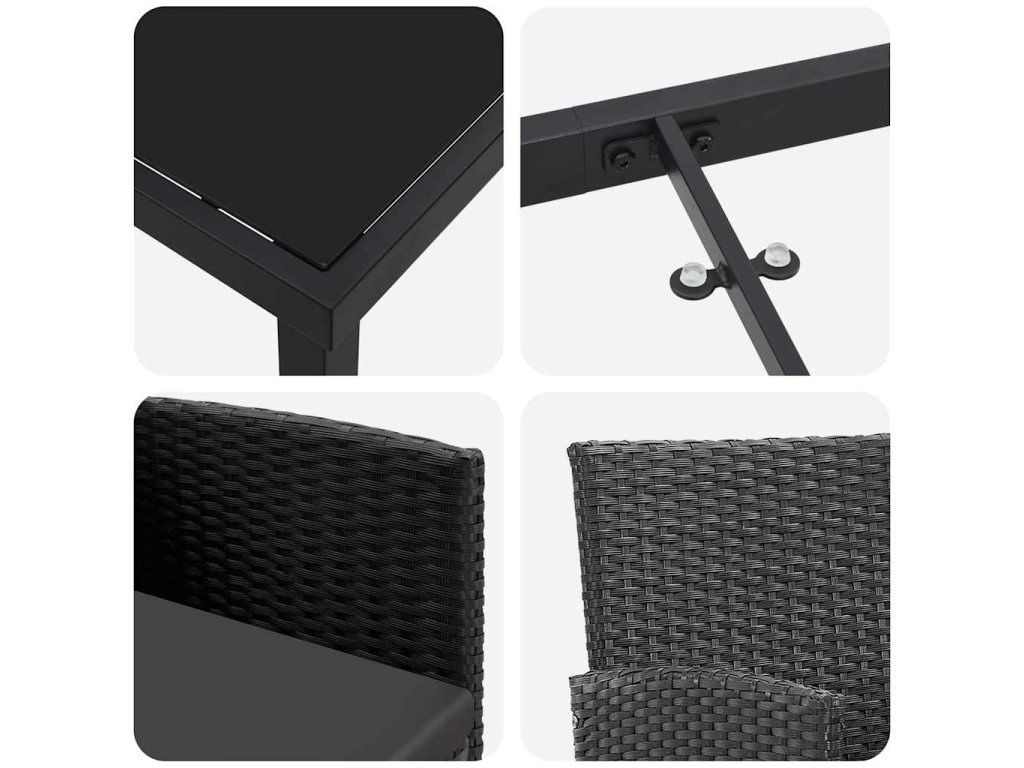 Tahle šikovná sada zahradního nábytku je skvělý mix stylu a praktičnosti. Hodí se na venkovní setkání, má elegantní, moderní vzhled s čistými liniemi a detaily, které padnou do jakéhokoli prostoru na patio, terase nebo v zahradě. Nejde jen o design; je bytelná a pohodlná, ideální na rodinné večeře nebo setkání s přáteli.