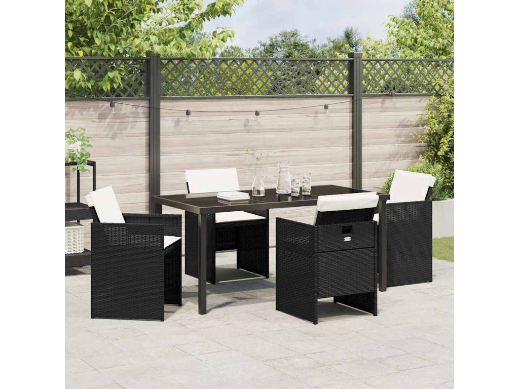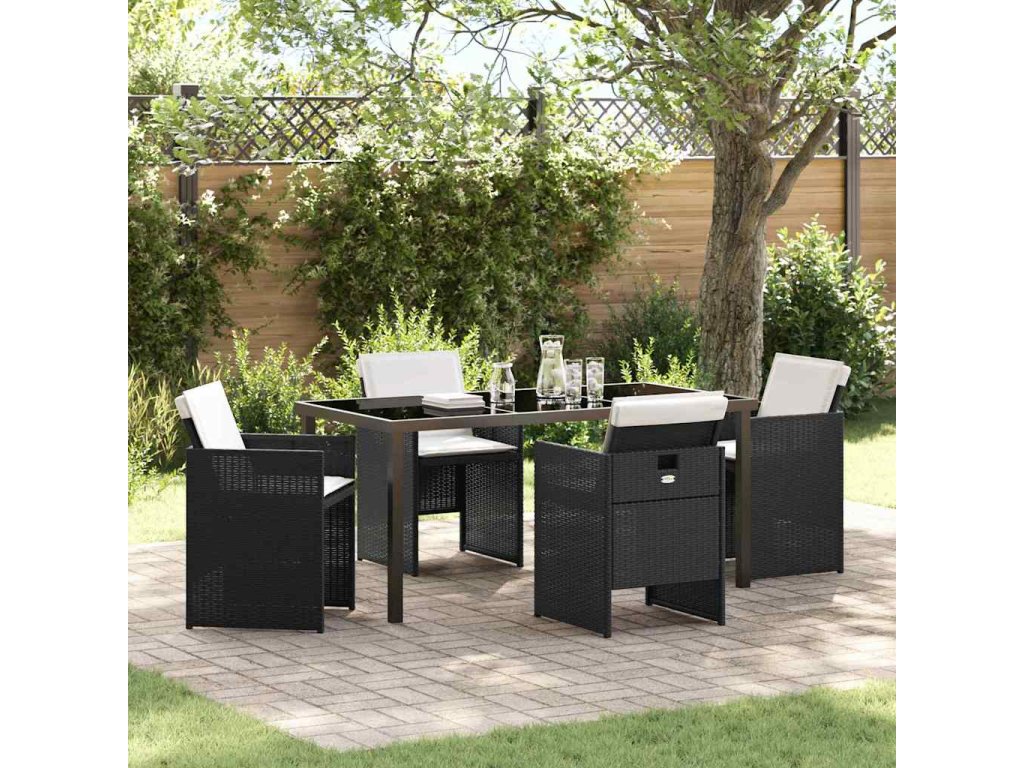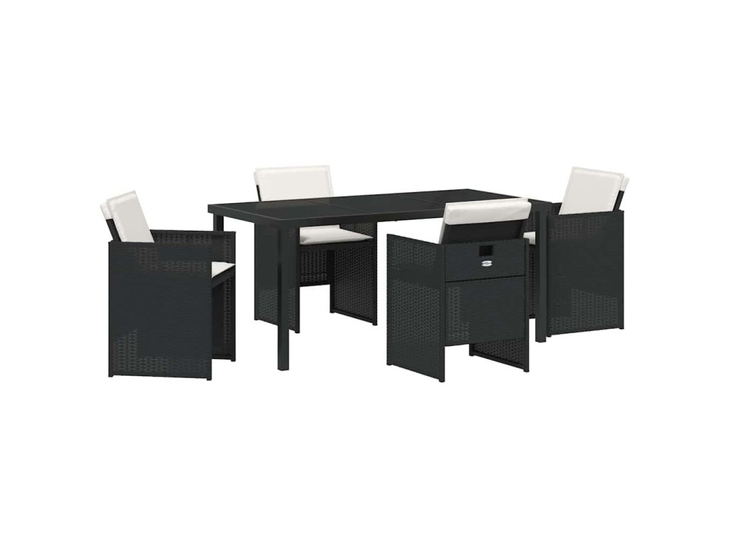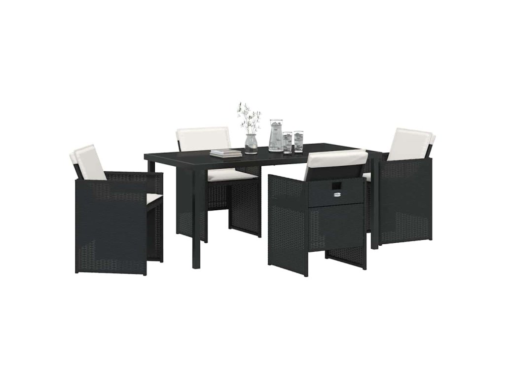 Zahradní jídelní souprava s polštářem 5 pcs Černá Poly ratan 3379942