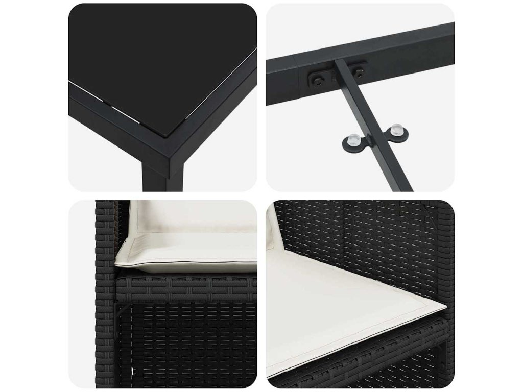 Tento trendy zahradní set posune váš venkovní životní prostor o úroveň výš díky modernímu designu a praktickým funkcím. Je super pro zahrady a terasy, přetváří obyčejná místa na elegantní, relaxační kouty, kde si užijete čas s přáteli a rodinou. Jeho pevná konstrukce a tkaná textura mají nadčasovou eleganci, která se hodí do každého domova.