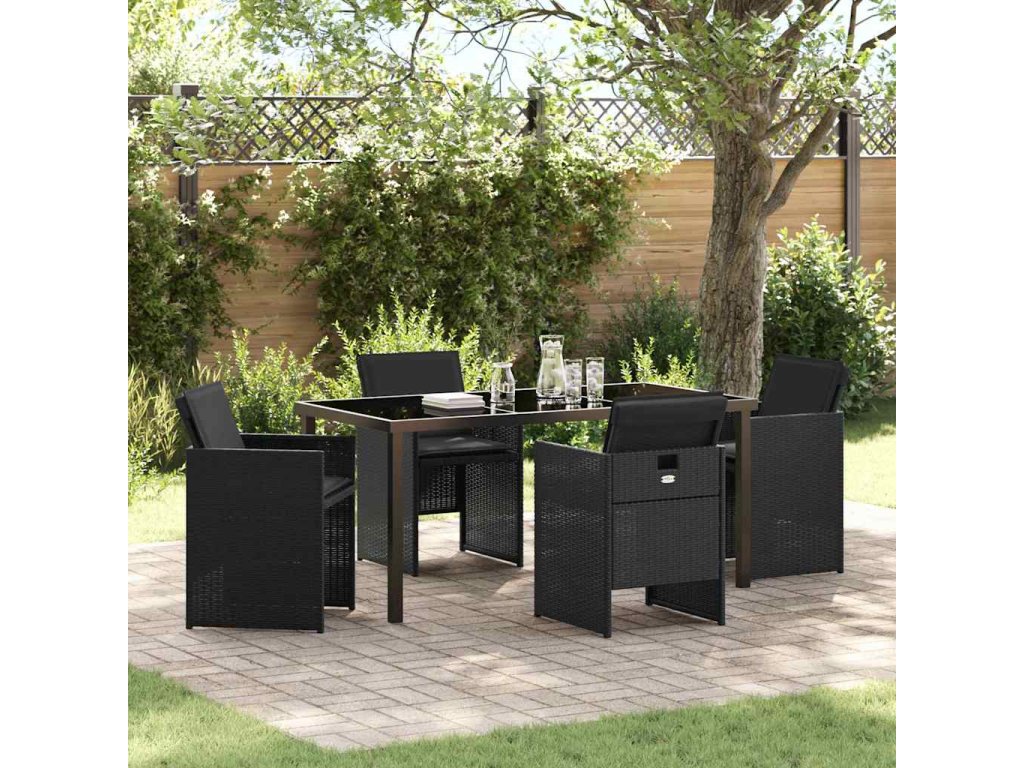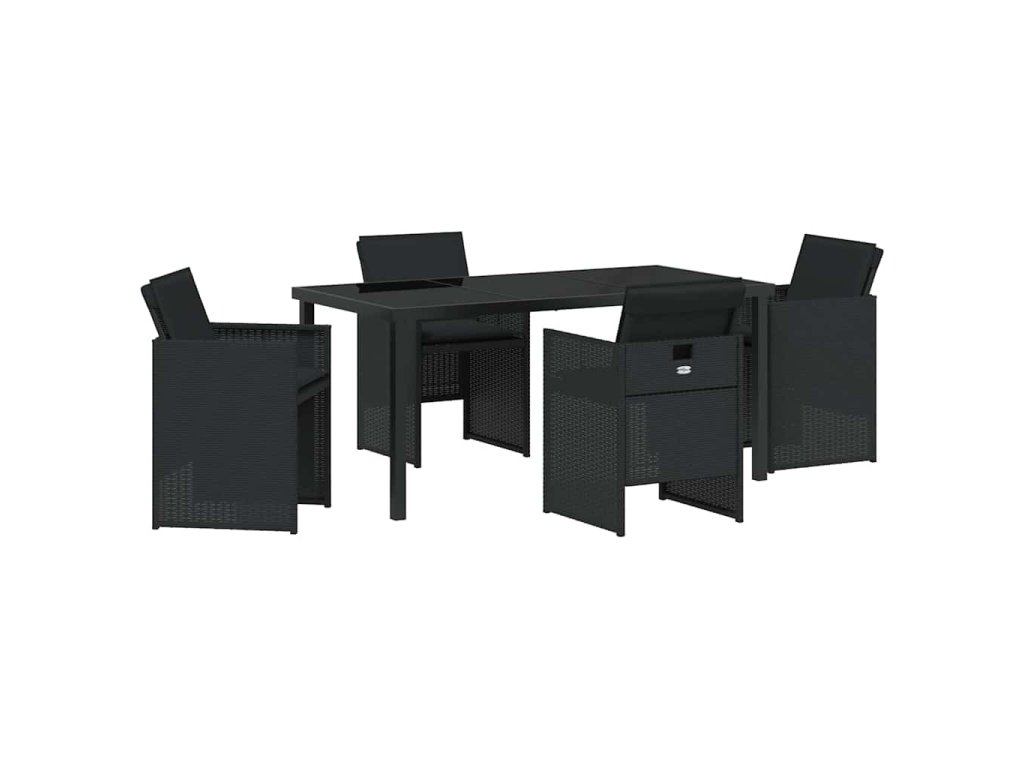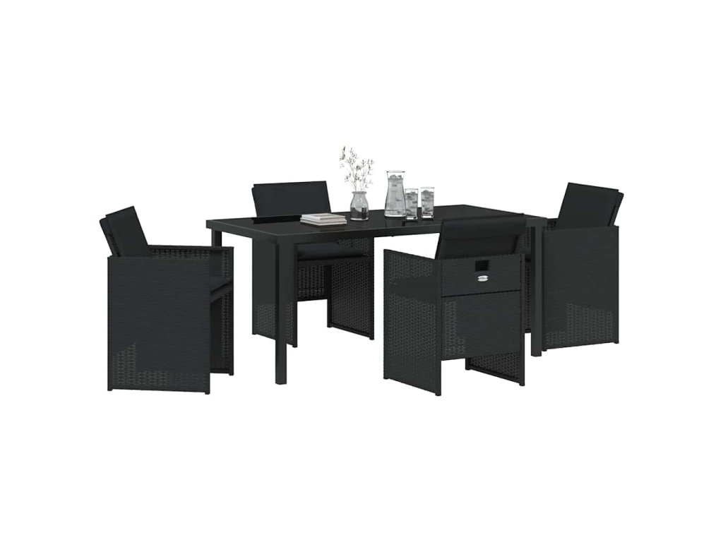 Zahradní jídelní souprava s polštářem 5 pcs Černá Poly ratan 3379946