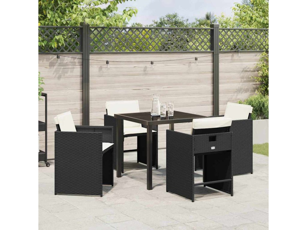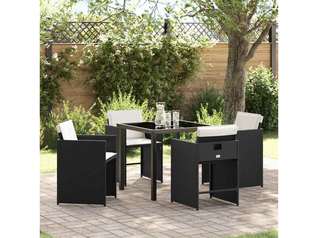 Zahradní jídelní souprava s polštářem 5 pcs Černá Poly ratan 3379972