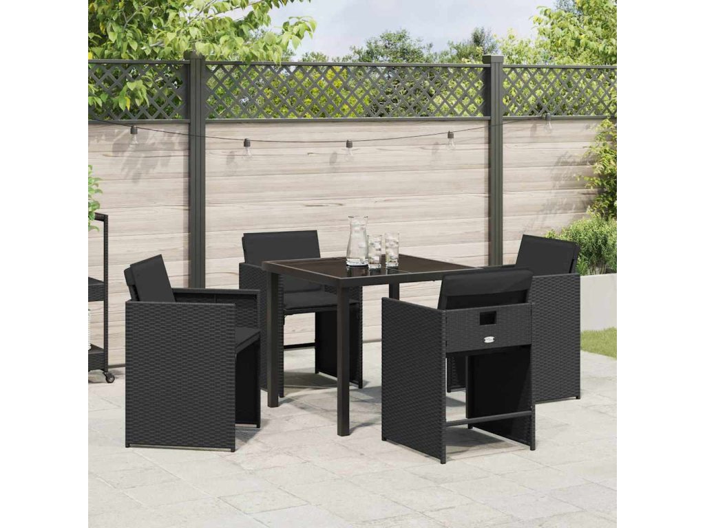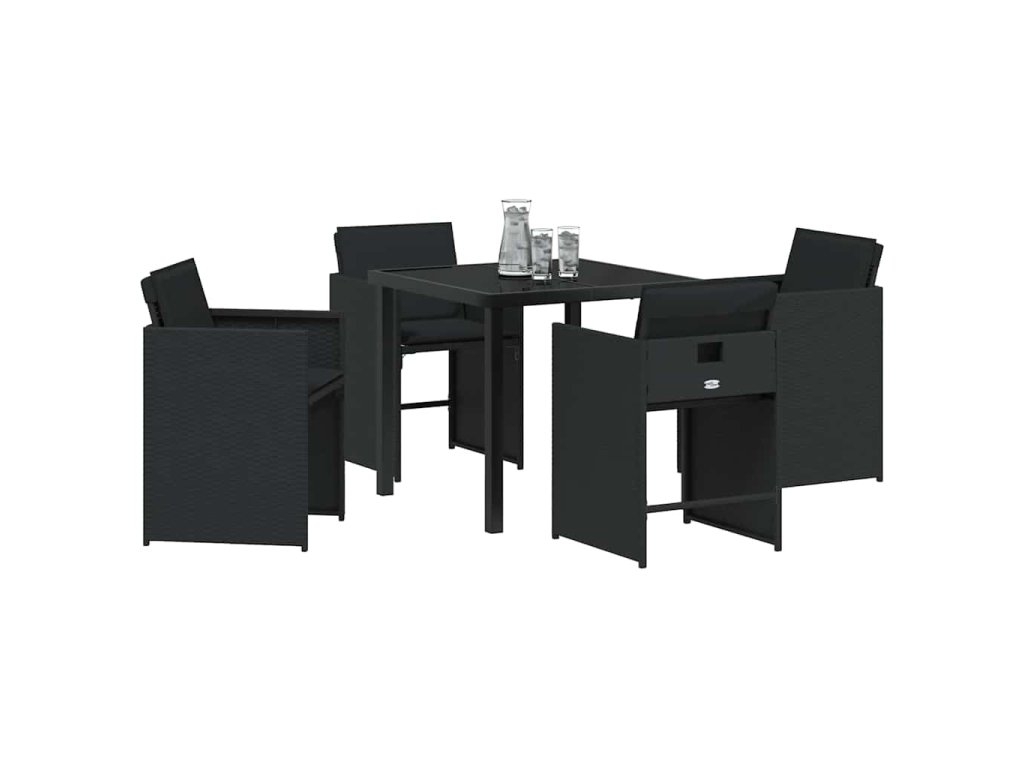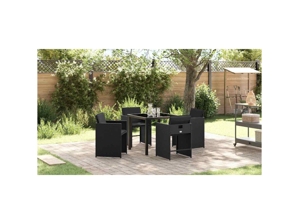 Zahradní jídelní souprava s polštářem 5 pcs Černá Poly ratan 3379976