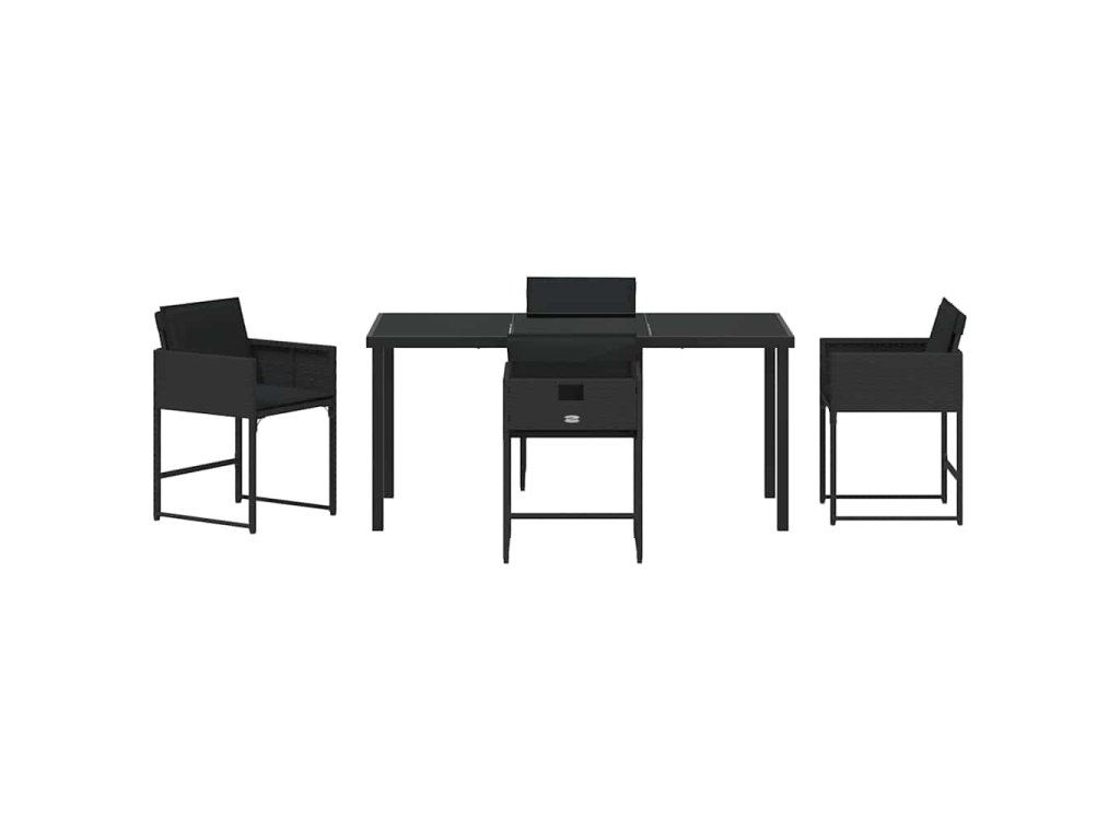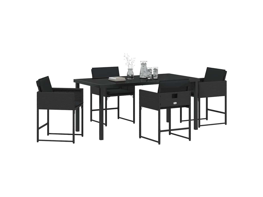Zahradní jídelní souprava s polštářem 5 pcs Černá Poly ratan 3380010