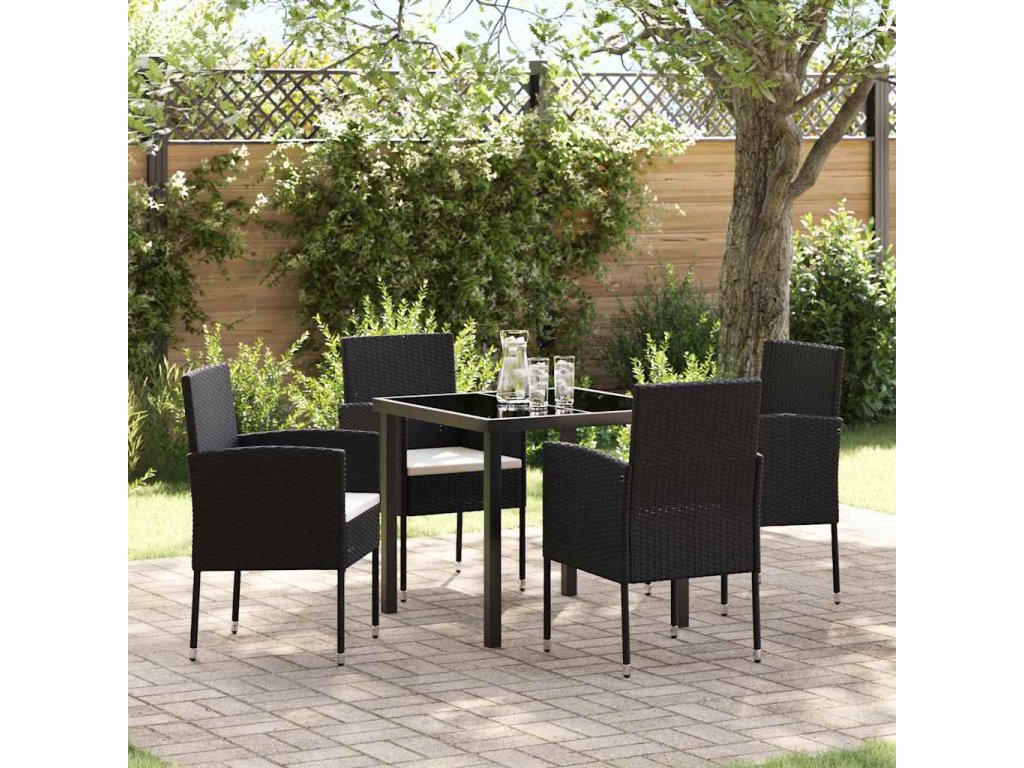 Zahradní jídelní souprava s polštářem 5 pcs Černá Poly ratan 3380051