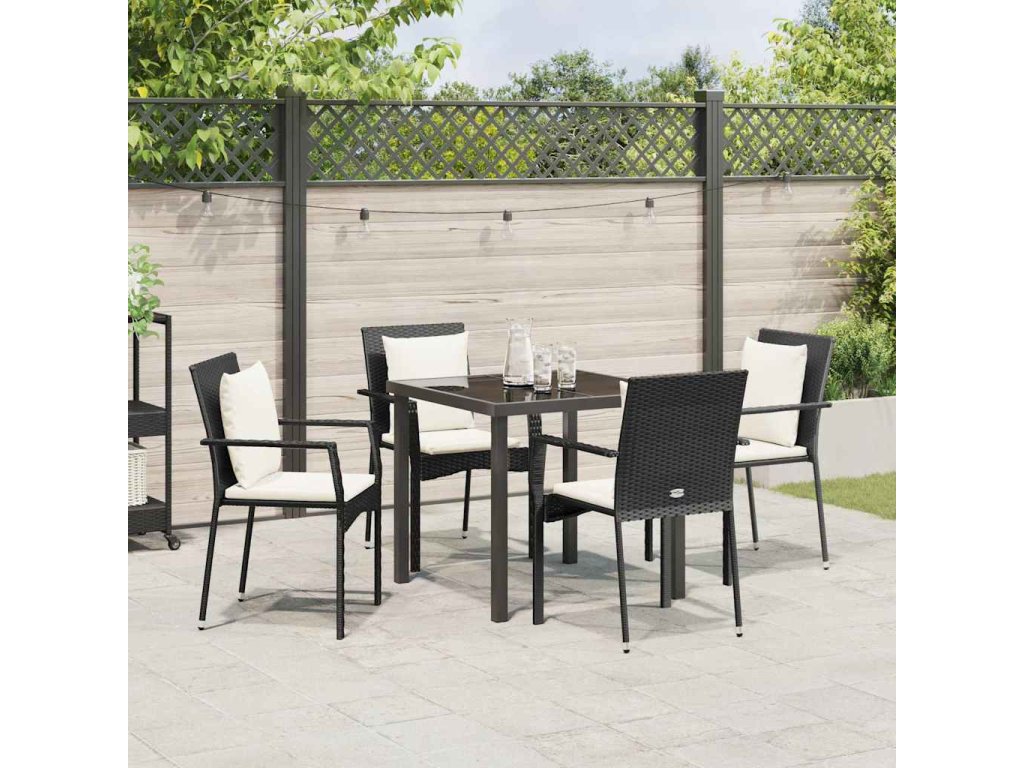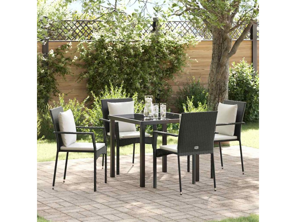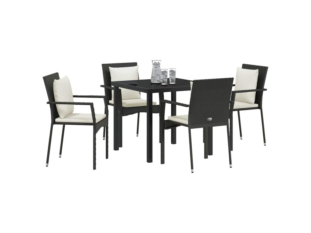 Zahradní jídelní souprava s polštářem 5 pcs Černá Poly ratan 3380072