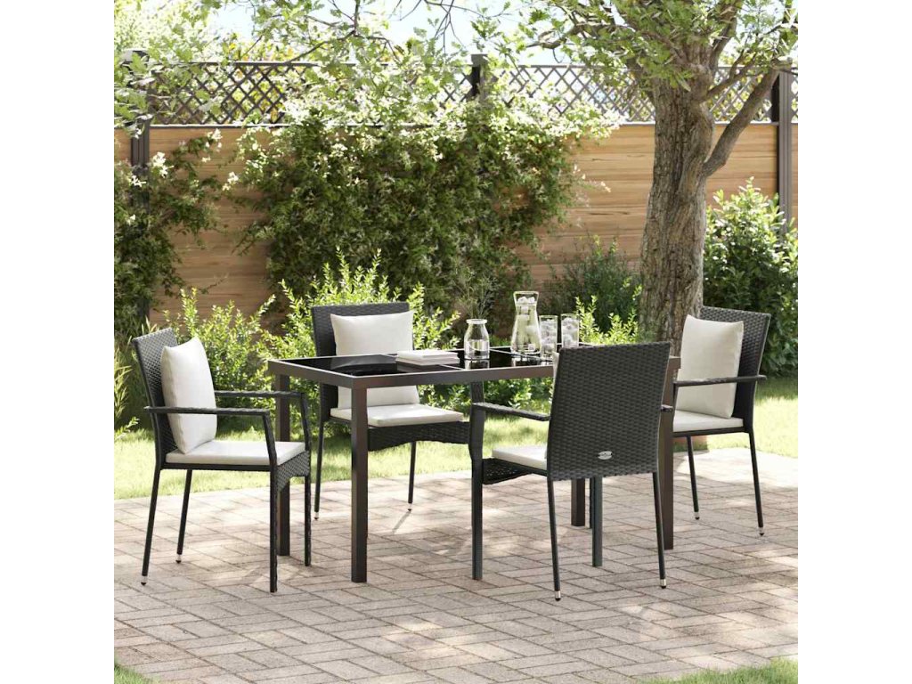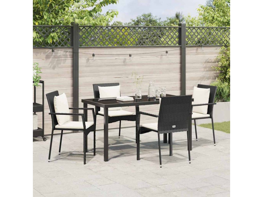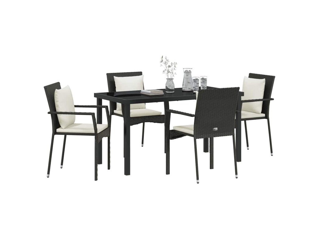 Zahradní jídelní souprava s polštářem 5 pcs Černá Poly ratan 3380073