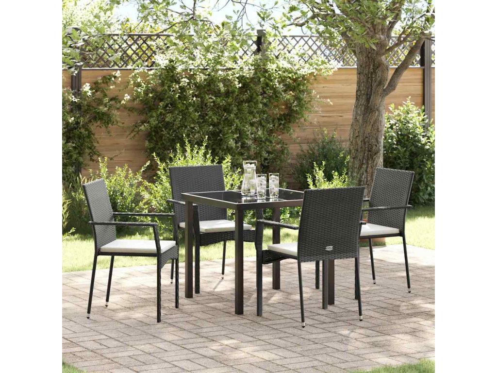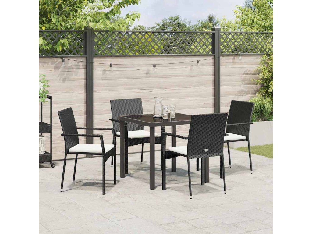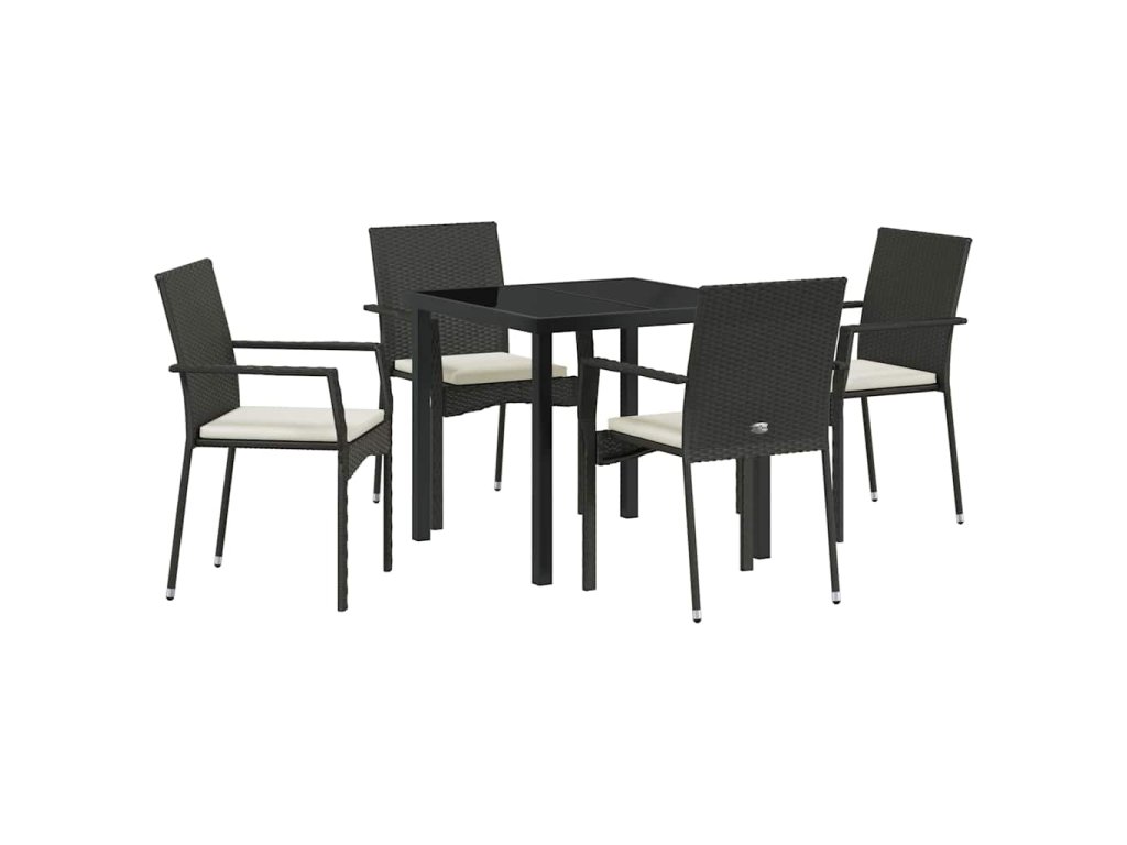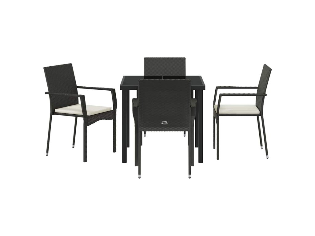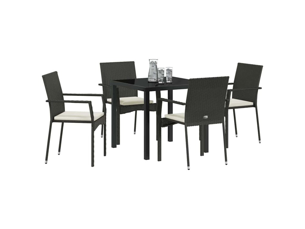 Zahradní jídelní souprava s polštářem 5 pcs Černá Poly ratan 3380079