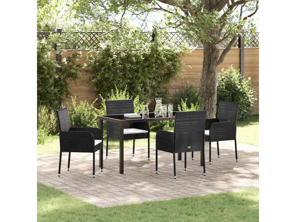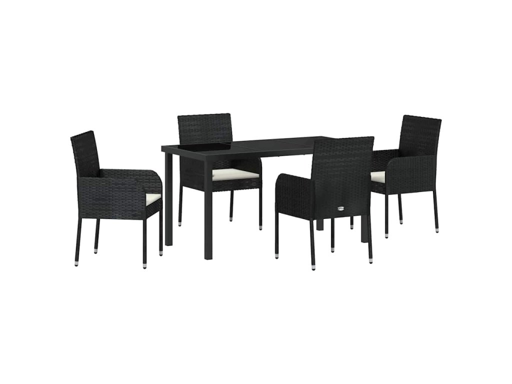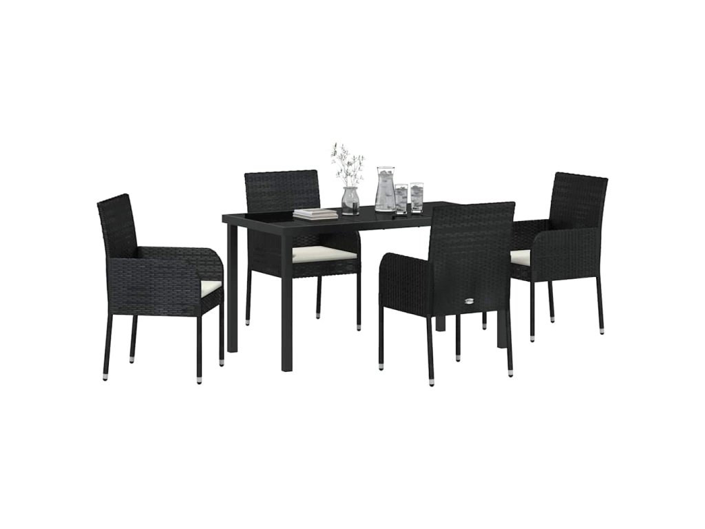 Zahradní jídelní souprava s polštářem 5 pcs Černá Poly ratan 3380101