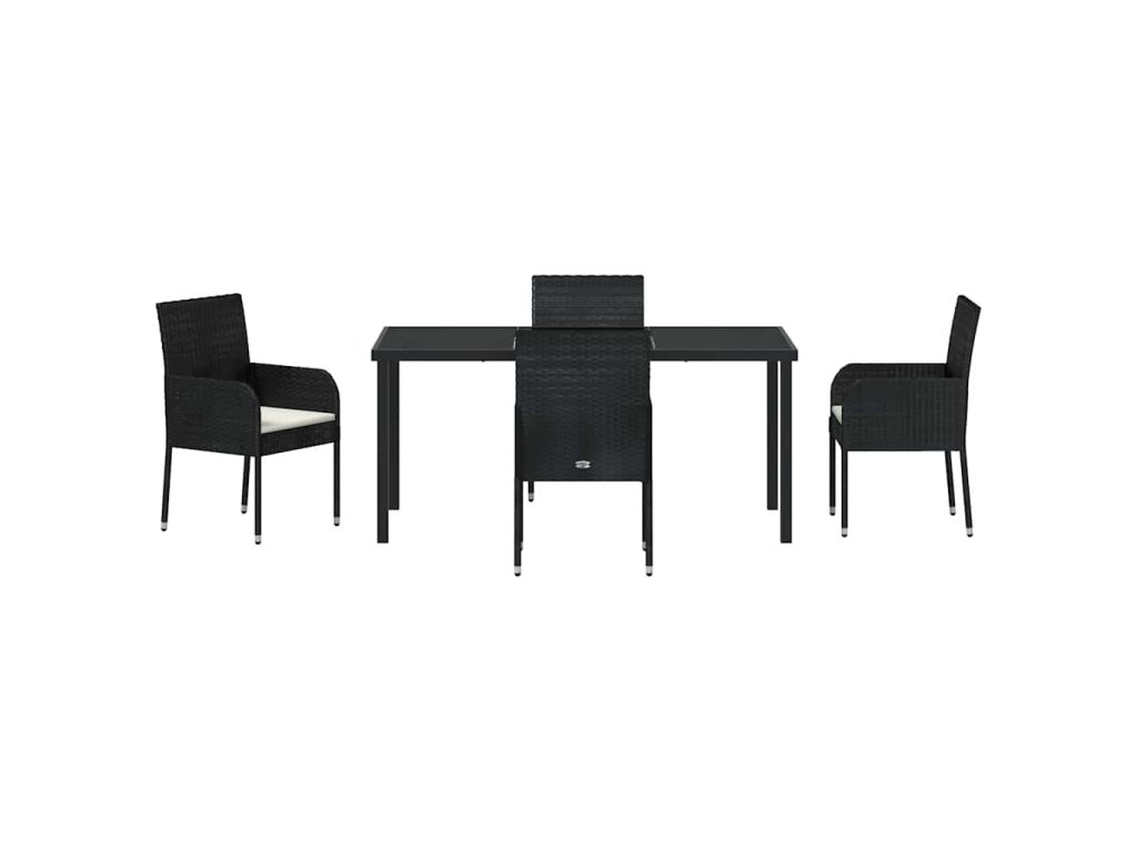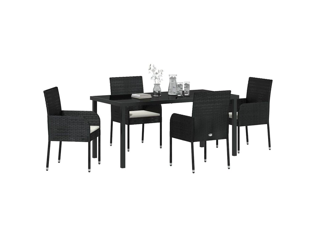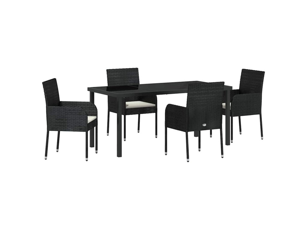 Zahradní jídelní souprava s polštářem 5 pcs Černá Poly ratan 3380102
