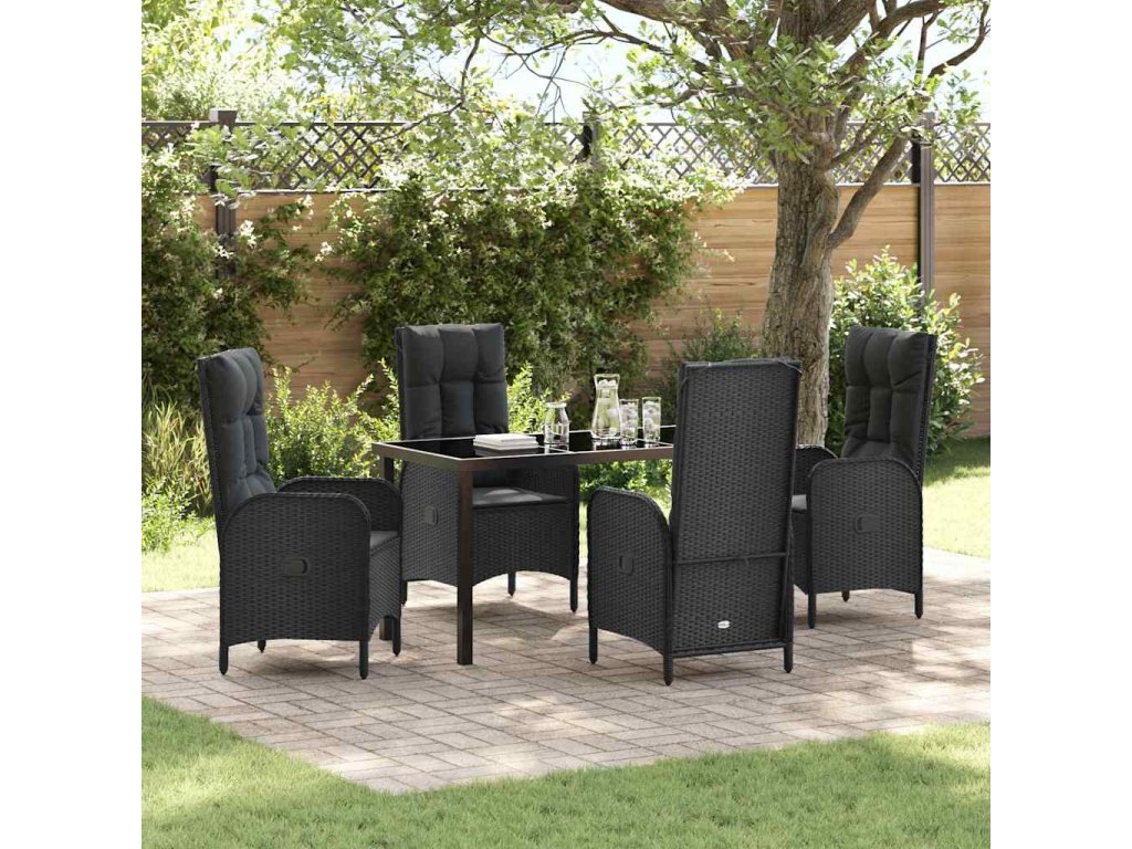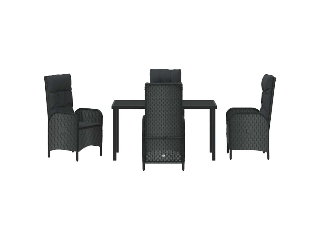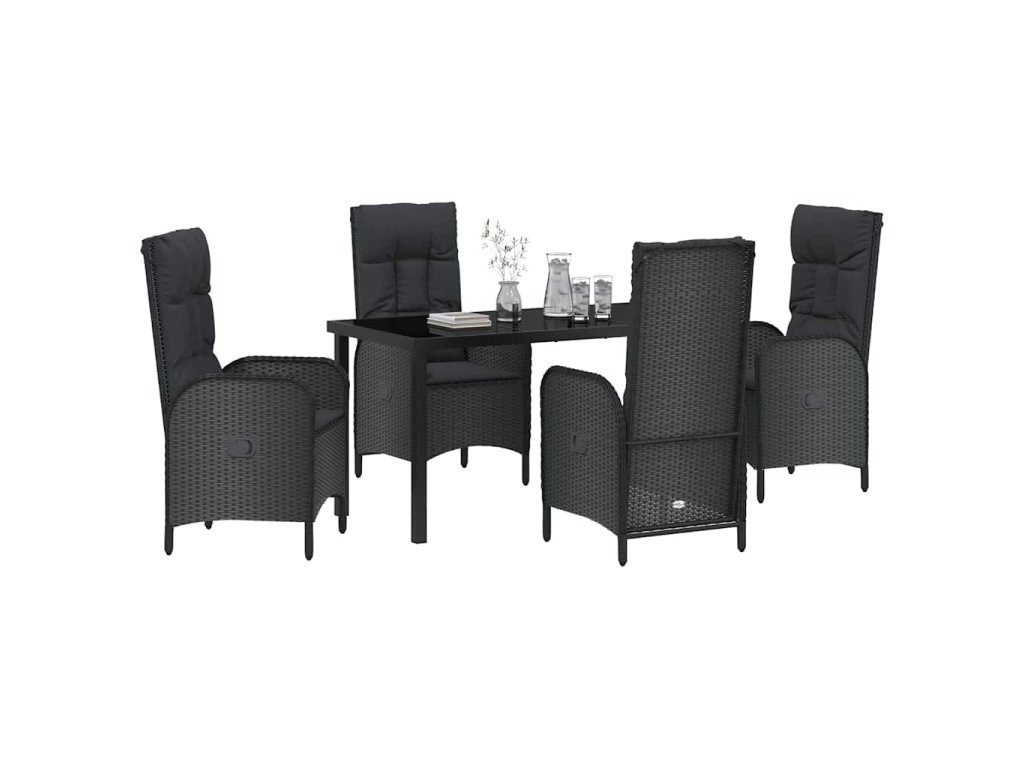 Zahradní jídelní souprava s polštářem 5 pcs Černá Poly ratan 3380115
