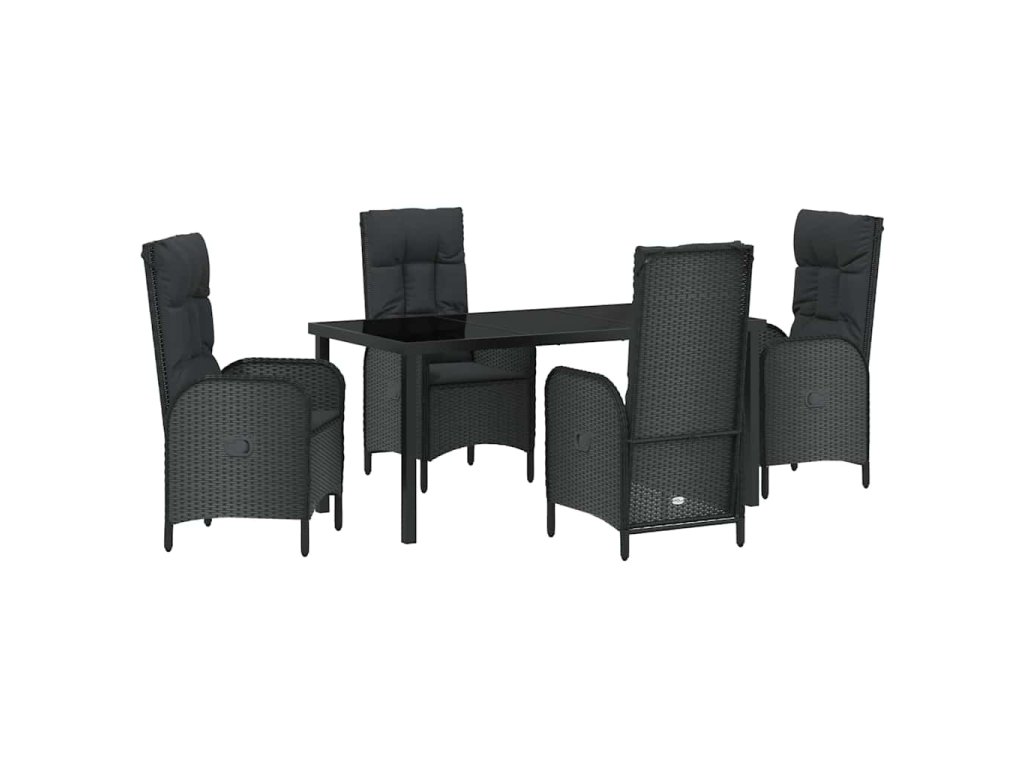 Zahradní jídelní souprava s polštářem 5 pcs Černá Poly ratan 3380116