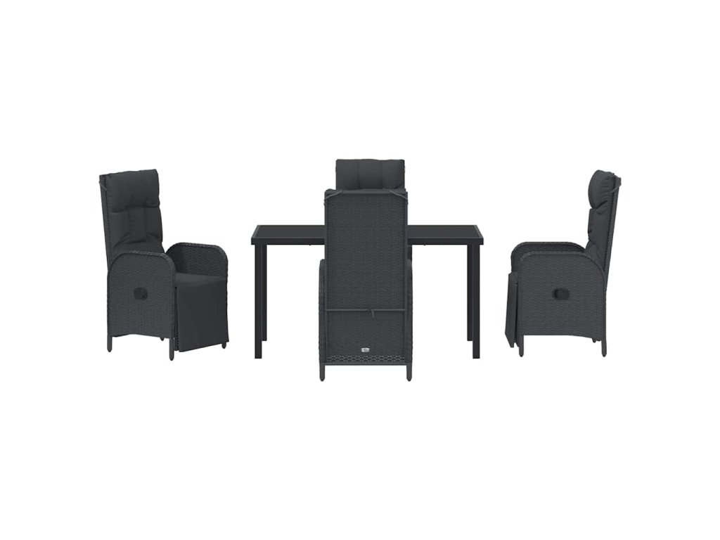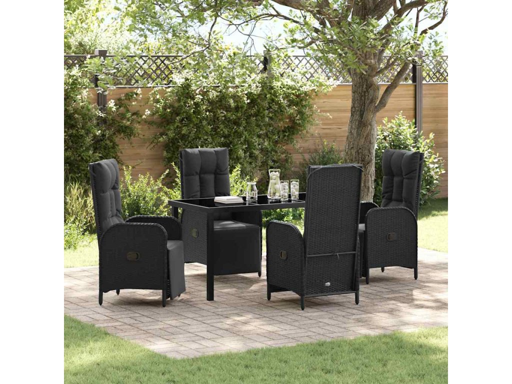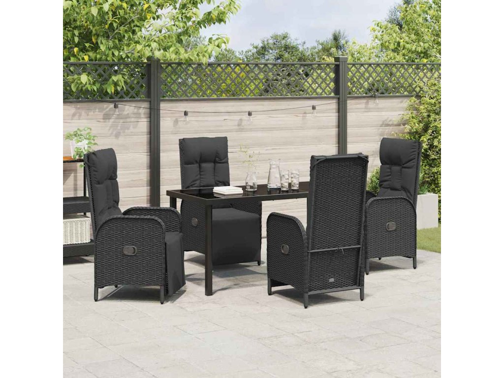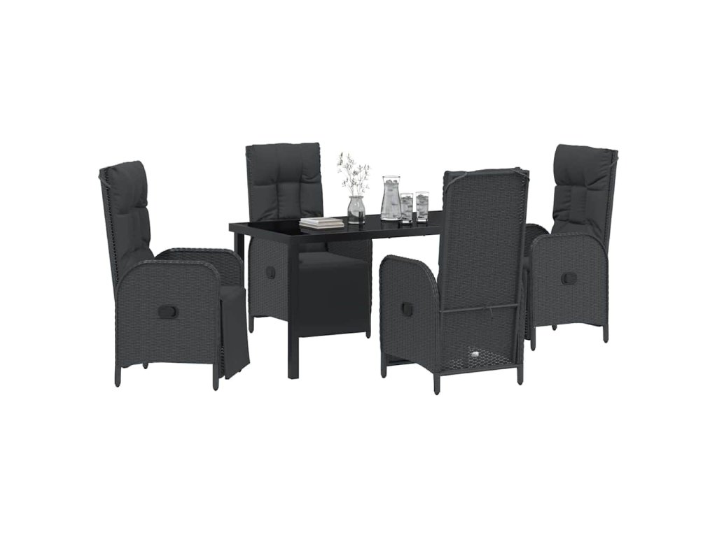 Zahradní jídelní souprava s polštářem 5 pcs Černá Poly ratan 3380122