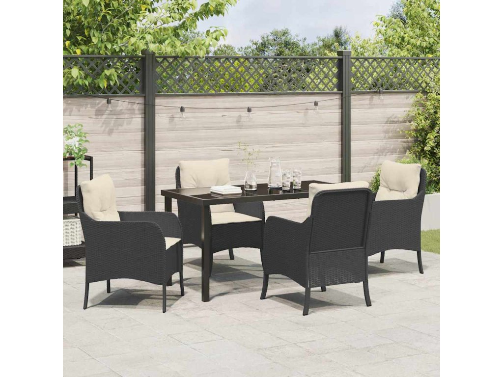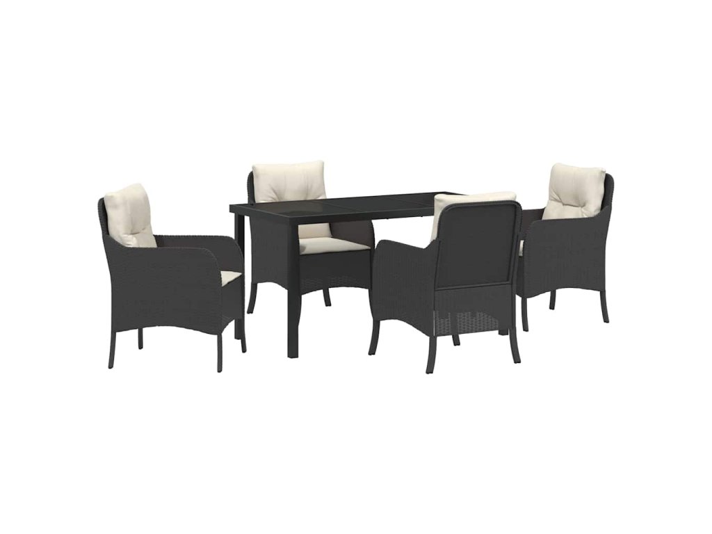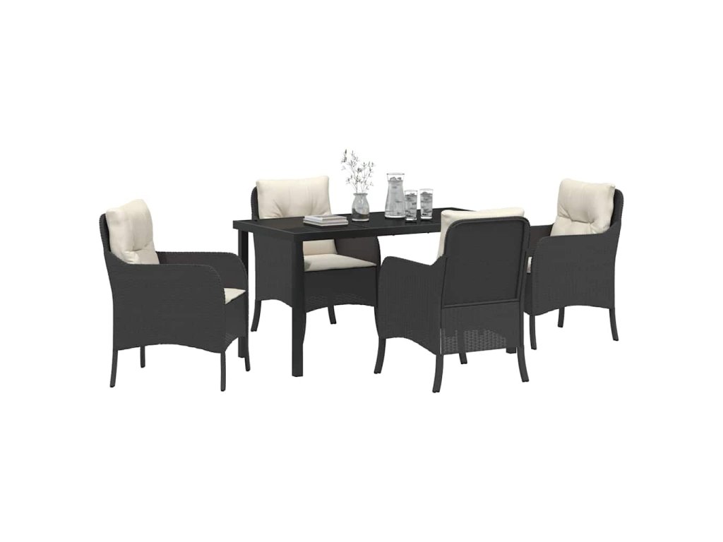 Zahradní jídelní souprava s polštářem 5 pcs Černá Poly ratan 3380143